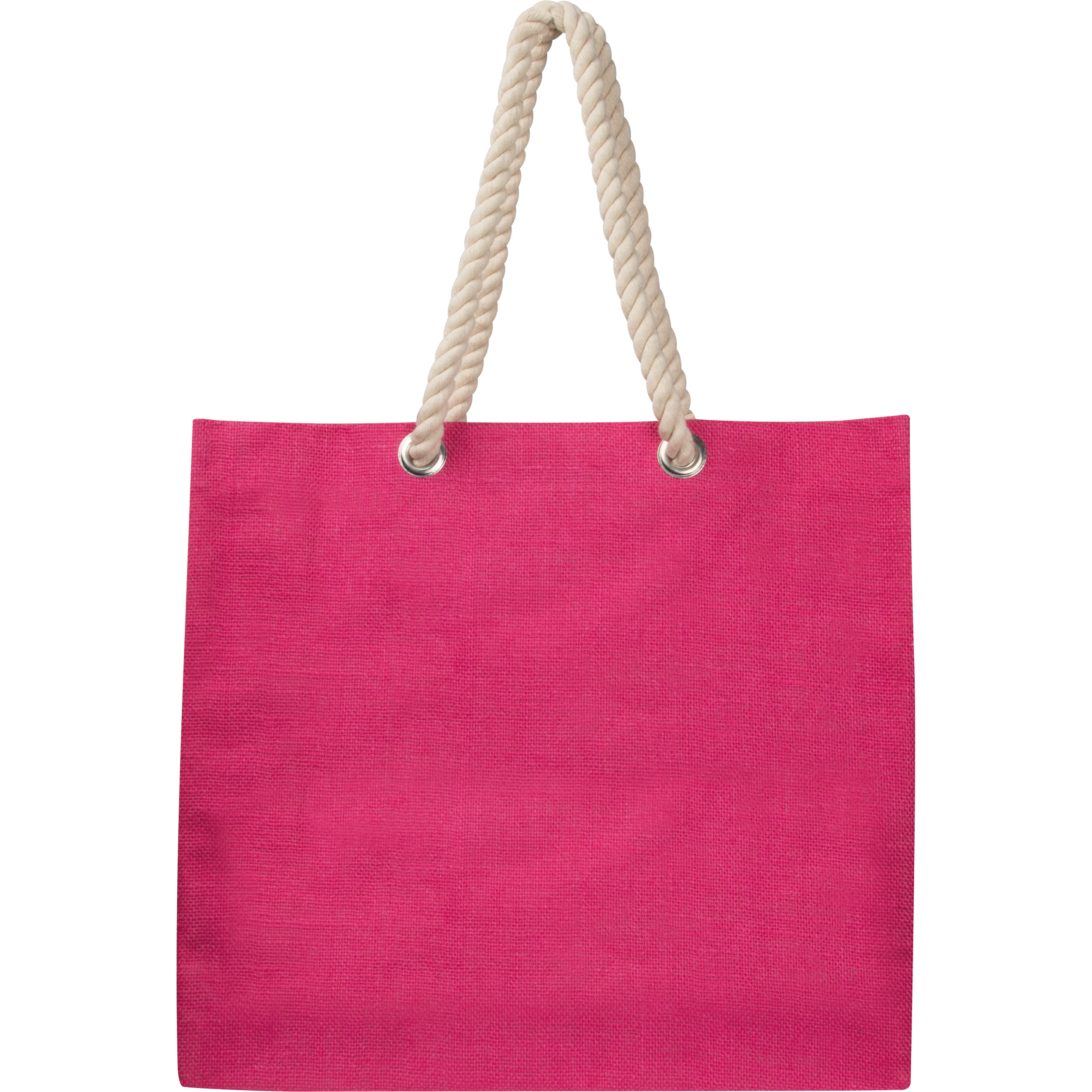 Große, farbige Jutetasche mit robusten Kordelgriffen und kleiner Geldbörse, die an der Kordel befestigt ist. Eignet sich hervorragend als Shoppingbegleiter. Die Werbung wird auf eine Seite gedruckt.