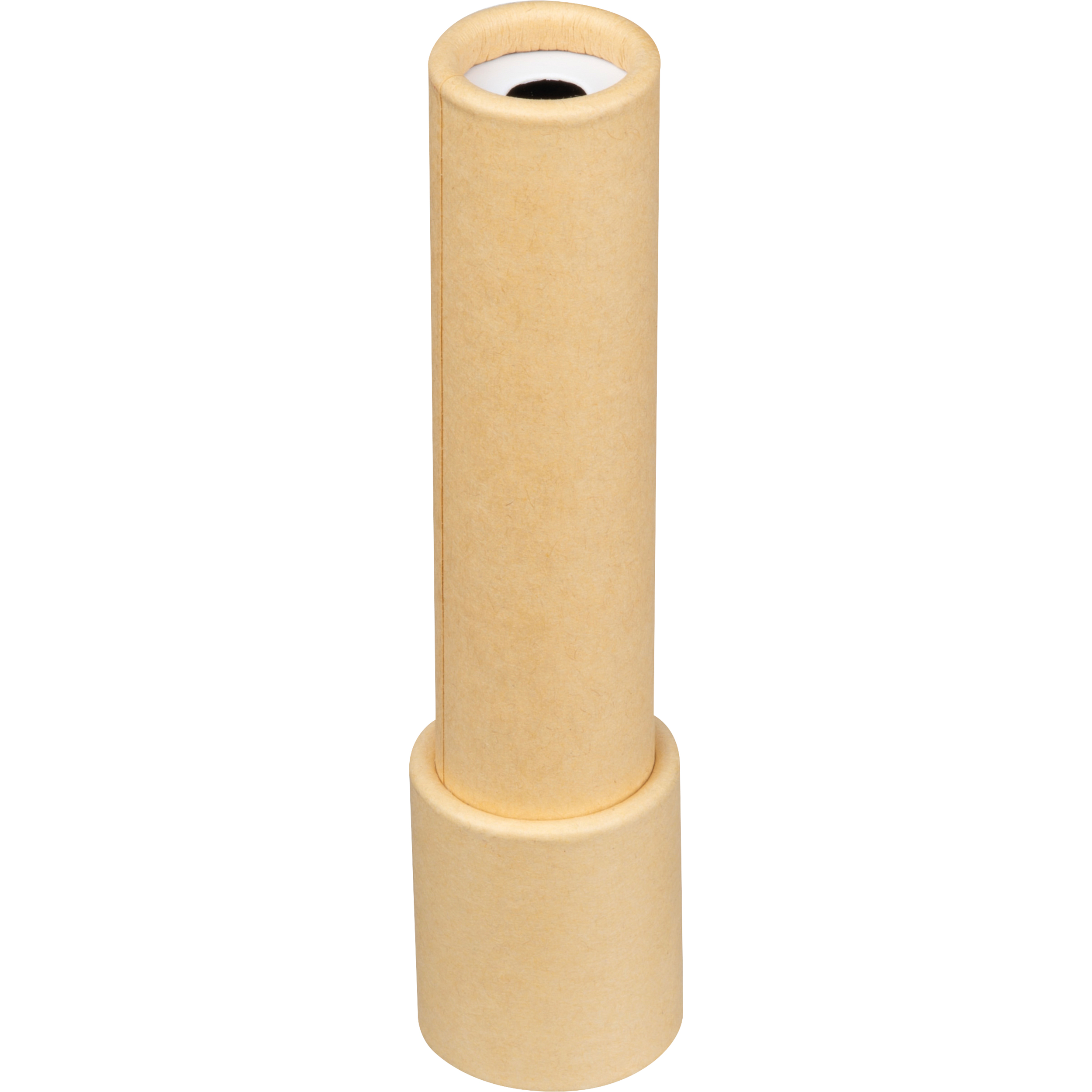 Dieses Kinderspielzeug erinnert an ein Fernrohr. Beim Durchschauen sieht man fantastische Bilder, welche durch eine Spiegelung kleinerer, farbiger Kunststoffsteinchen entsteht. Dreht man das Kaleidoskop, wechseln diese Bilder. Die Bilderwelt eines Kaleidoskopes, seine Symbolik und Metaphorik, sind eine Kunstform, die die Sinne verzaubert und den Geist befreit. Ihre Werbung drucken wir auf den Schaft des Artikels.