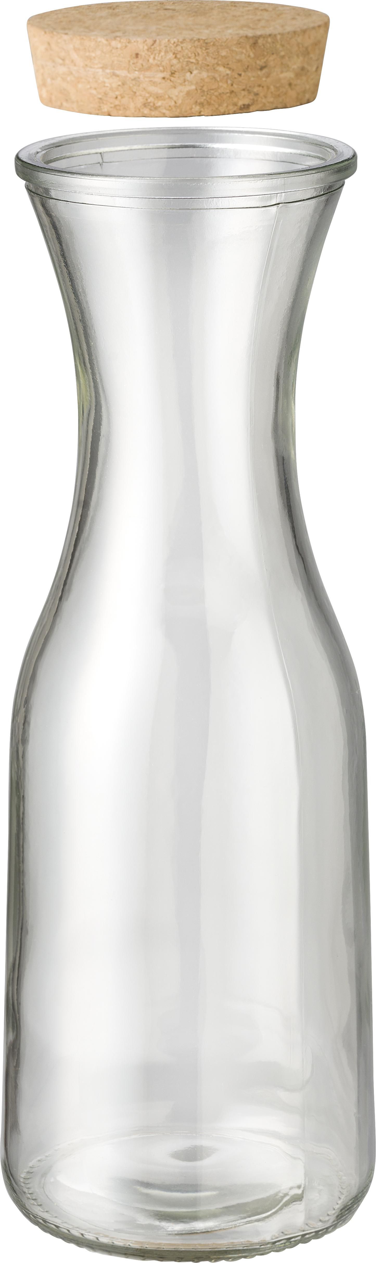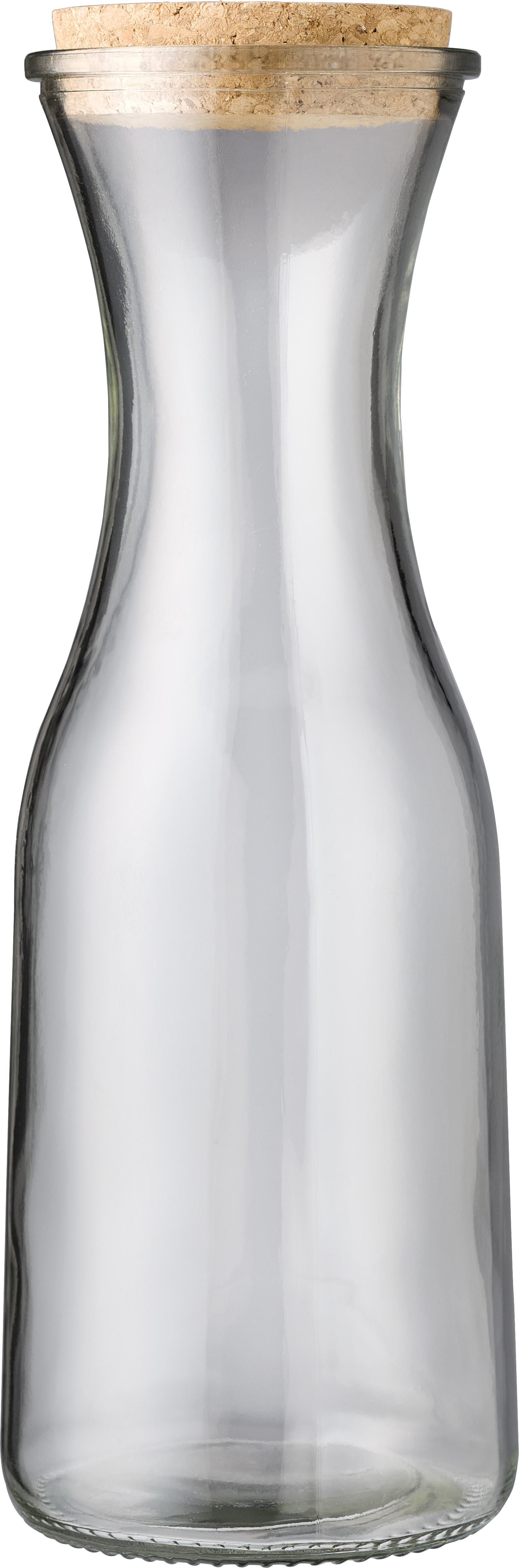 Karaffe aus recyceltem Glas (1 L). Mit Korkdeckel. Für kalte Getränke geeignet. Einzeln verpackt in einer Verpackung aus Kraftpapier.