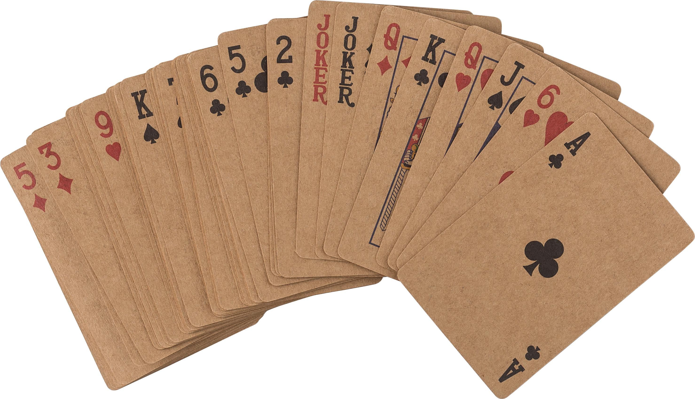 Set aus 2 Kartenspielen aus Recyclingkarton mit je 52 Karten und 2 Jockern in einer Geschenkbox aus Kraftpapier.