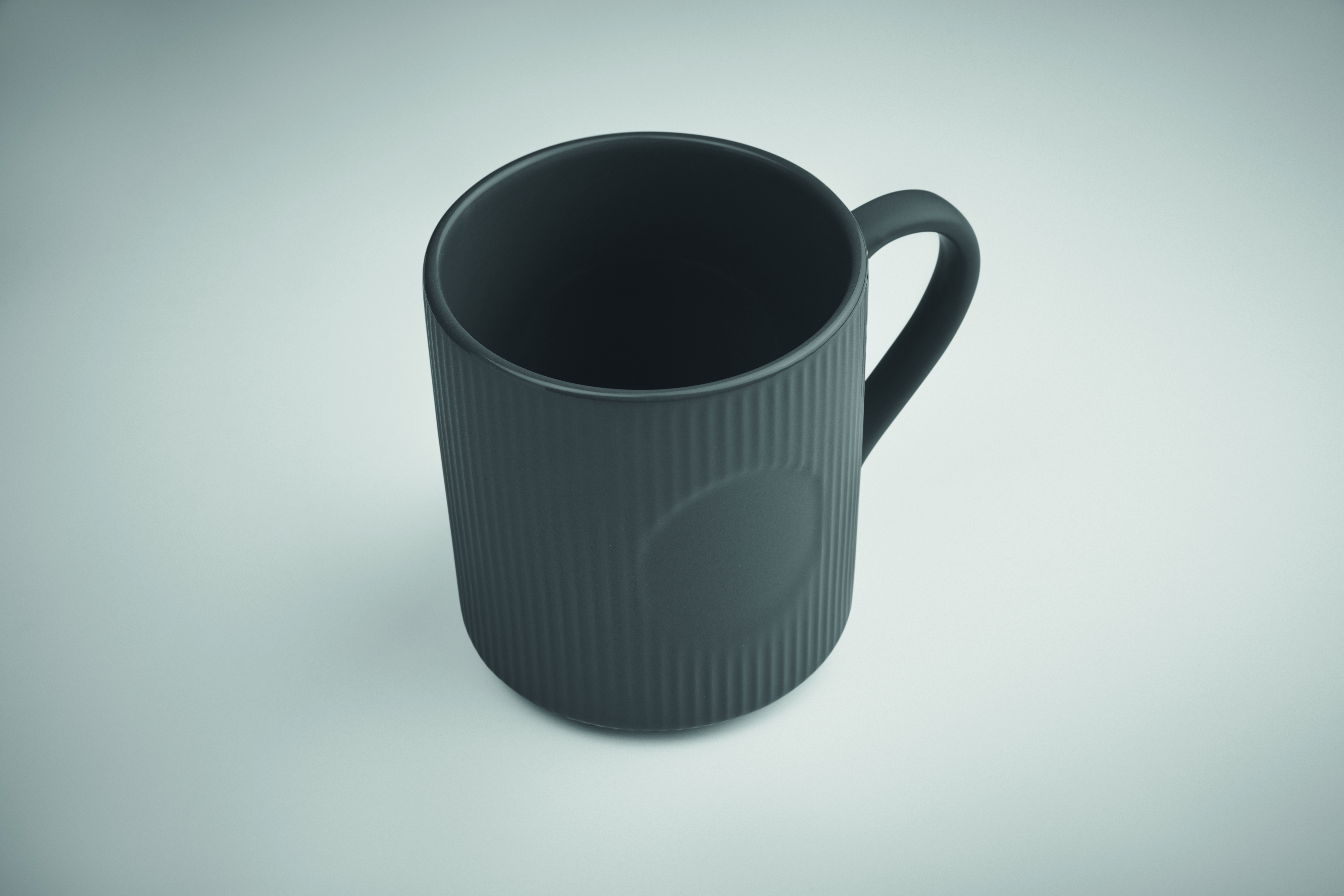 Becher aus Keramik mit Rillen-Optik. Mattes Finish. Füllmenge: 340 ml.