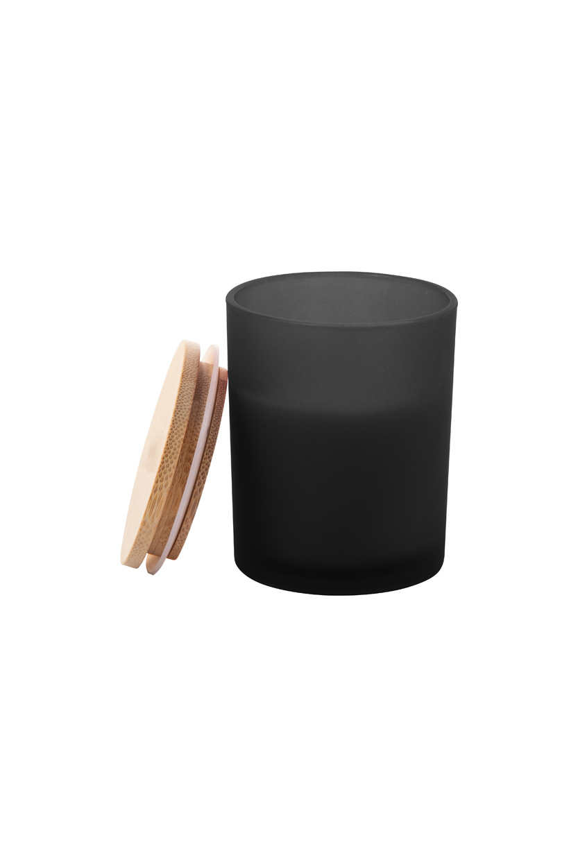 Duftkerze aus pflanzlichem Wachs in einem Milchglashalter mit Bambusdeckel. Mit 120 Gramm Wachs. Einzeln in Kraftpapierbox.