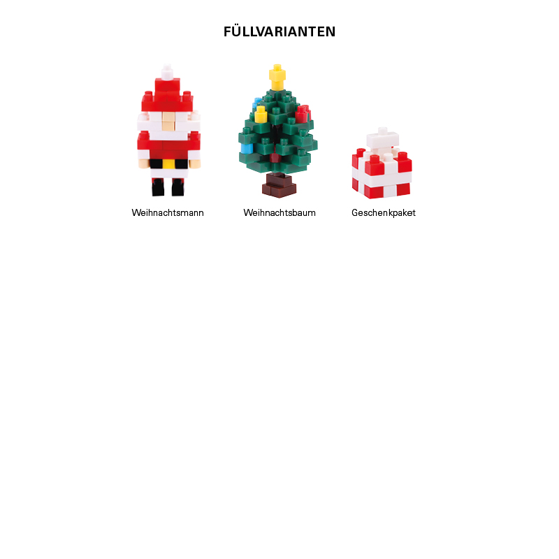 Füllung: | 1 BRIXIES Klemmbaustein-Set Weihnachtsmann, 30 Teile |