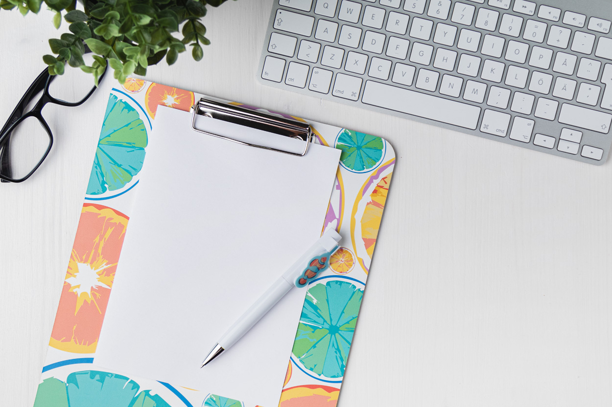 Klemmbrett Woopy als Werbegeschenk individuell gestaltet.