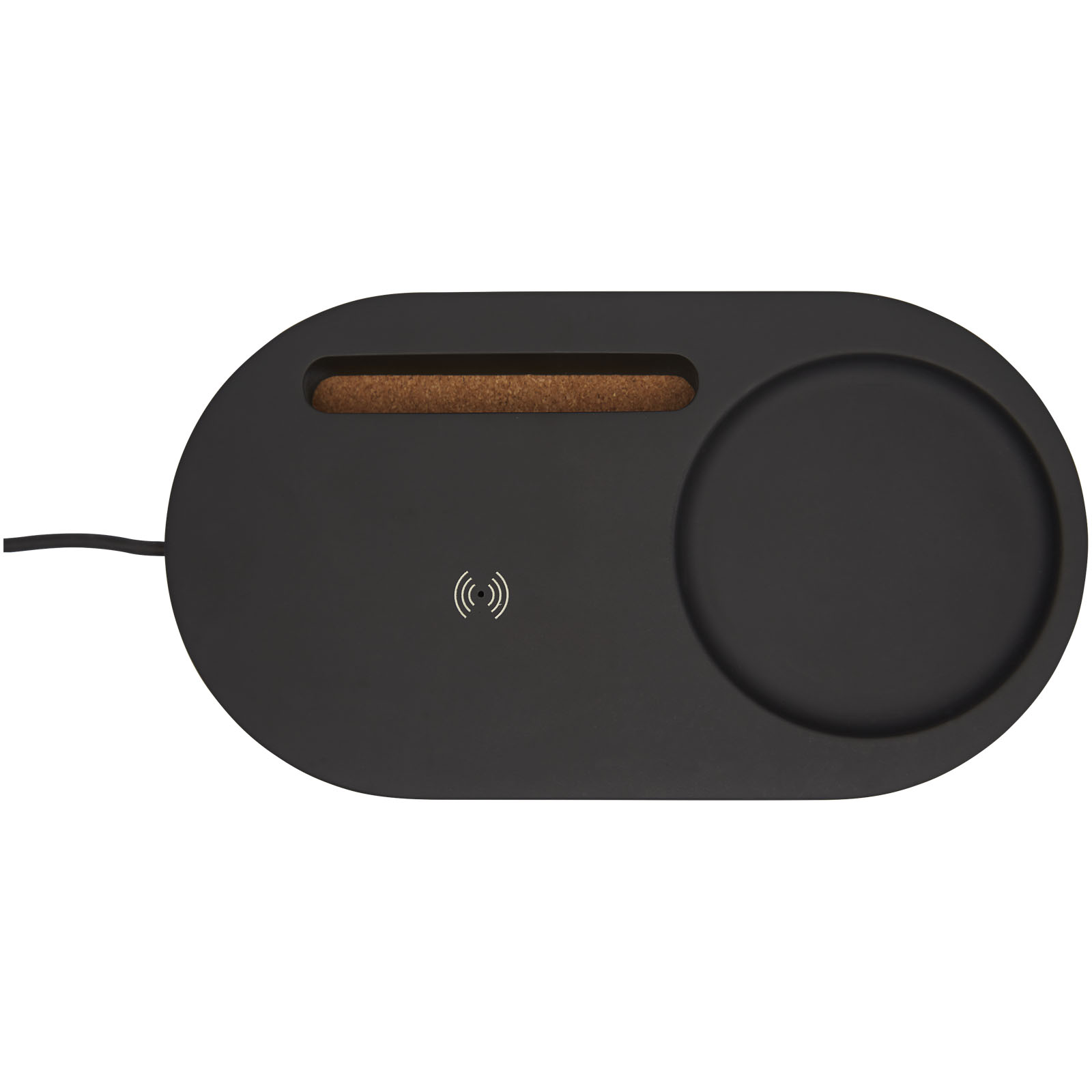 Kabelloser 5 W Schreibtisch-Organizer mit Ladefunktion aus einer Kombination von natürlichem Kalkstein und Kork. Um ein Gerät ohne drahtlose Technologie aufzuladen, wird ein externer Ladeempfänger oder ein Empfängergehäuse benötigt. Verpackt in einer Geschenkschachtel und wird mit einer Anleitung geliefert (beides aus nachhaltigem Material). Enthält ein 100 cm USB-Kabel.