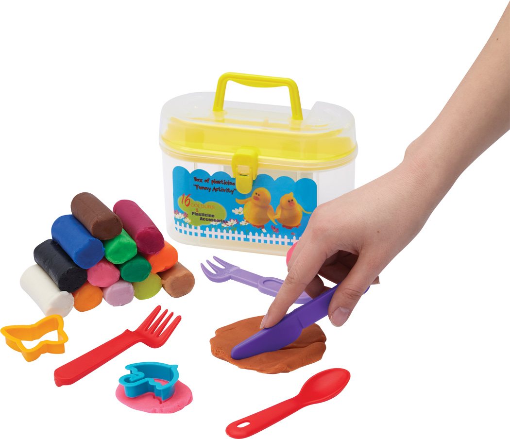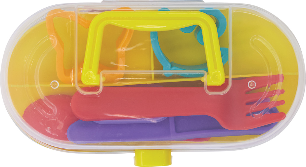 Knetköfferchen FUNNY ACTIVITY: inkl. 16 verschiedenfarbige Knetstangen, mit 2 Ausstechförmchen und 4 Modellier-Werkzeugen (Form und Farbe der Förmchen und Werkzeuge variieren), in Koffer mit Tragegriff