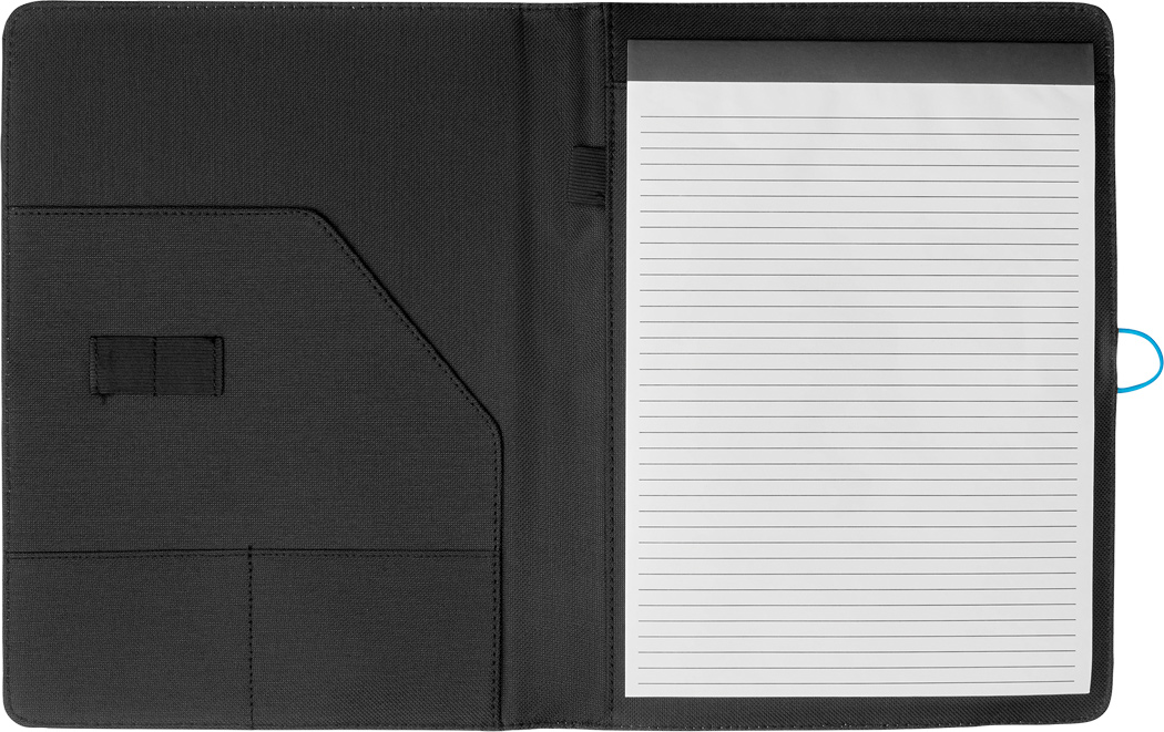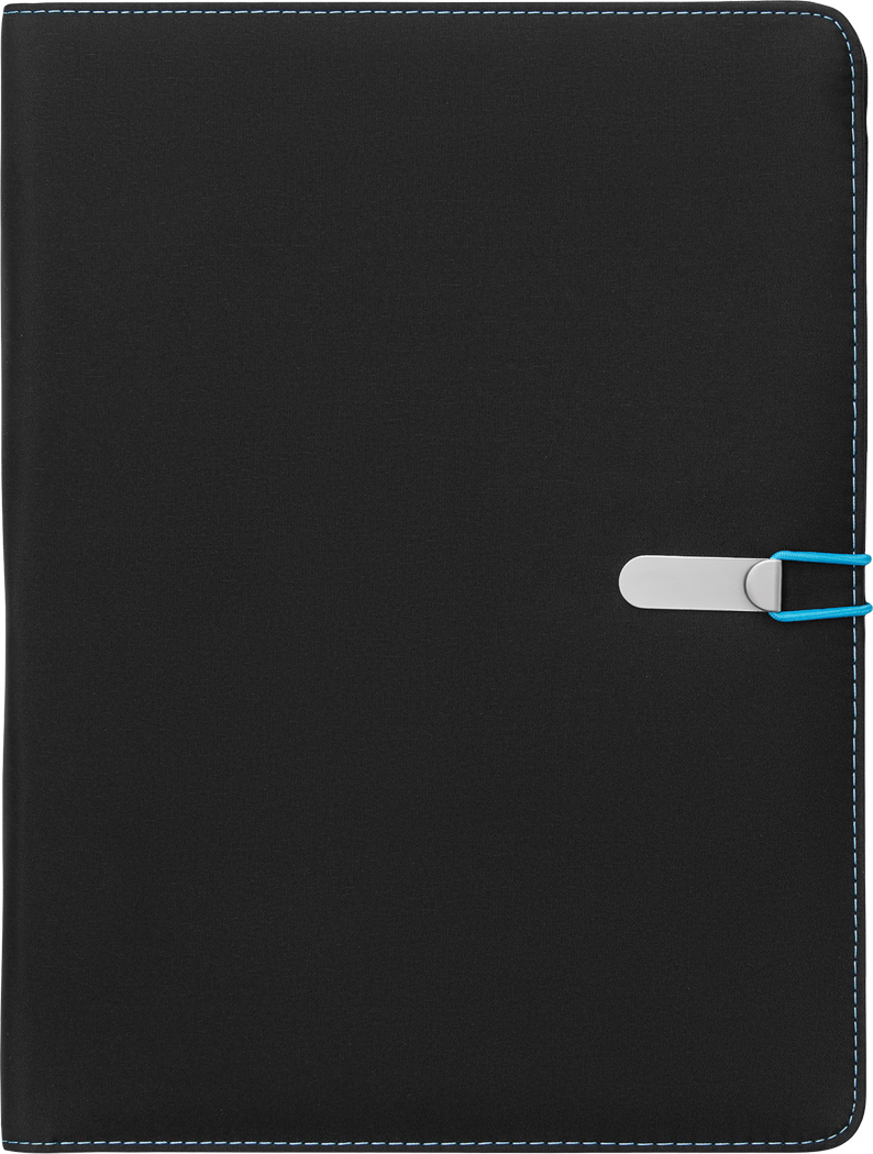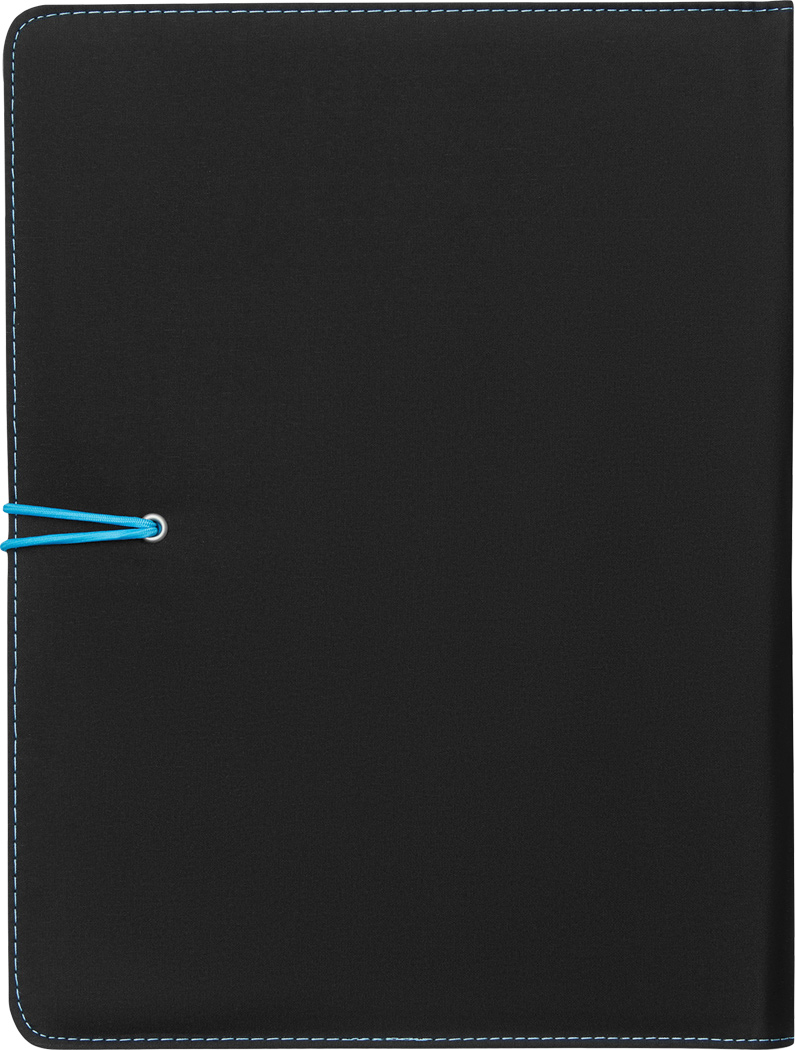 Konferenzmappe SESSION im DIN-A4-Format: Metallhaken mit farbigem Gummiband zum Verschließen, innen diverse Einsteckfächer, 2 elastische Schlaufen, inkl. Schreibblock (liniert), Schlaufe für 1 Schreibgerät, außen mit farbigen Ziernähten