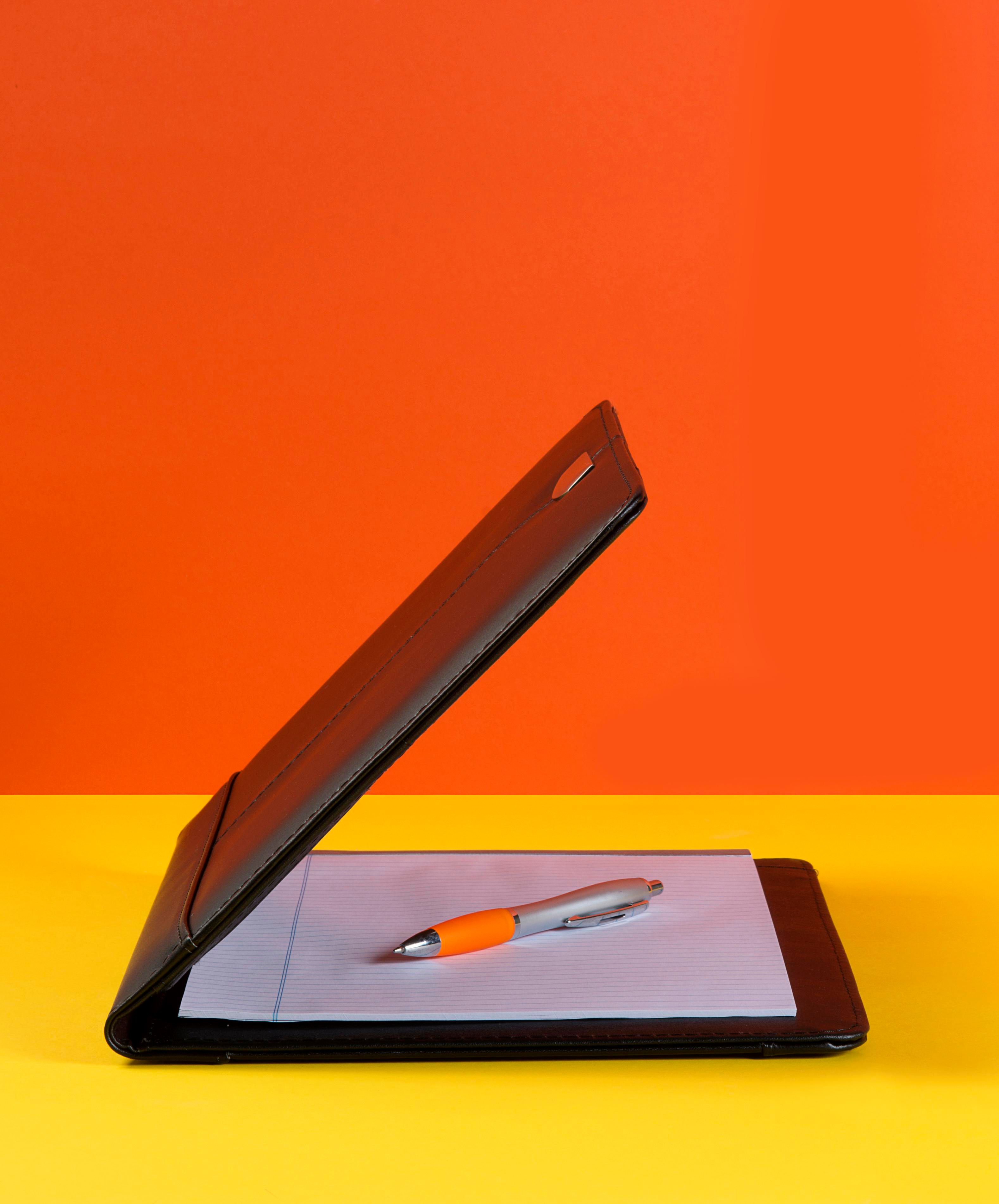 Konferenzmappe aus Kunstleder Frederick mit Logo für Geschäftskunden.