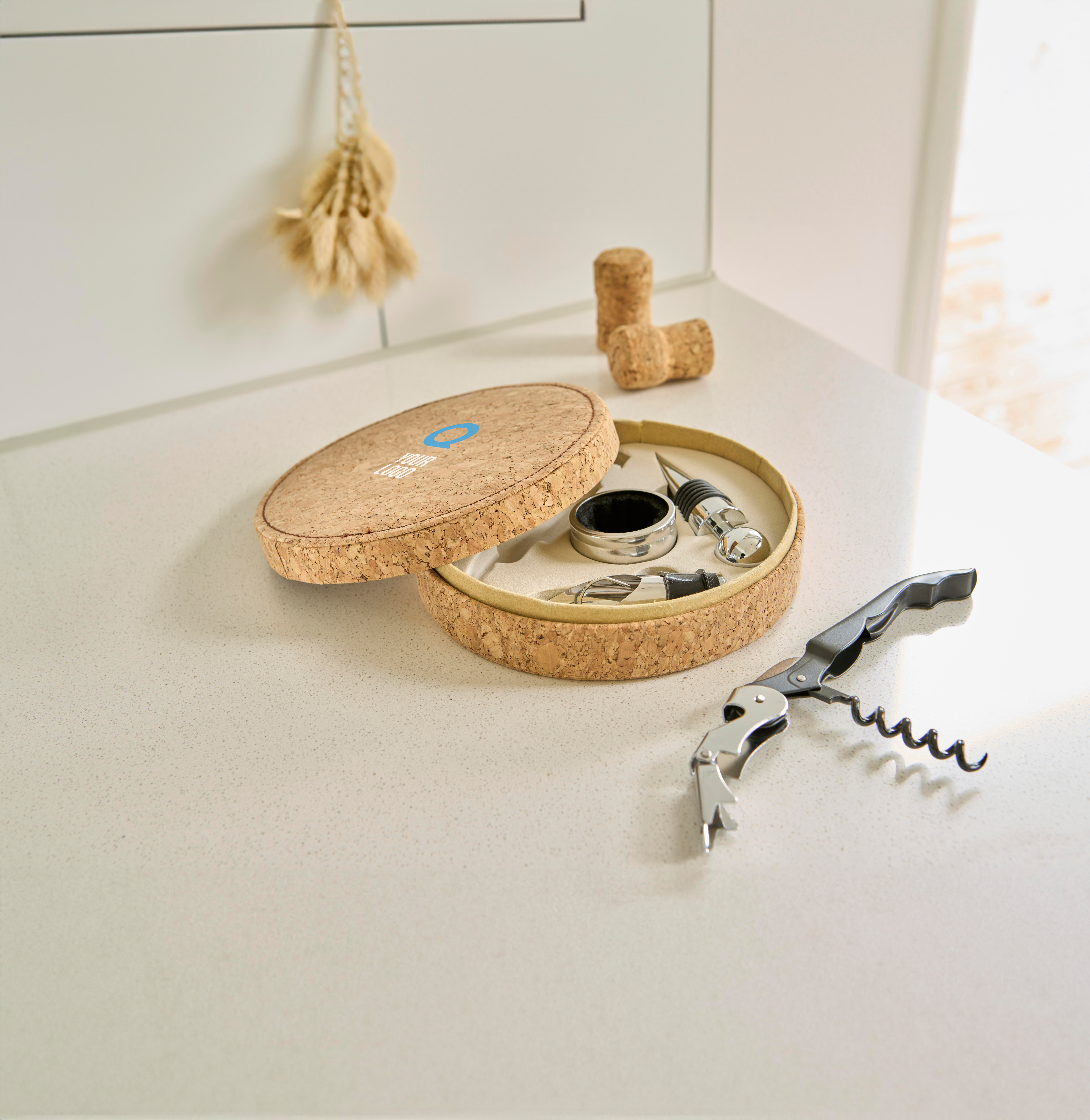 Weinset aus PU mit Korkoptik Milana als Streuartikel für die Kundenbindung.