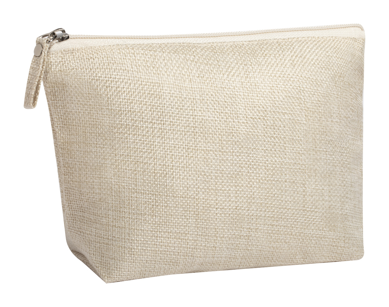 Kosmetiktasche mit Reißverschluss aus naturfarbenem Polyester.