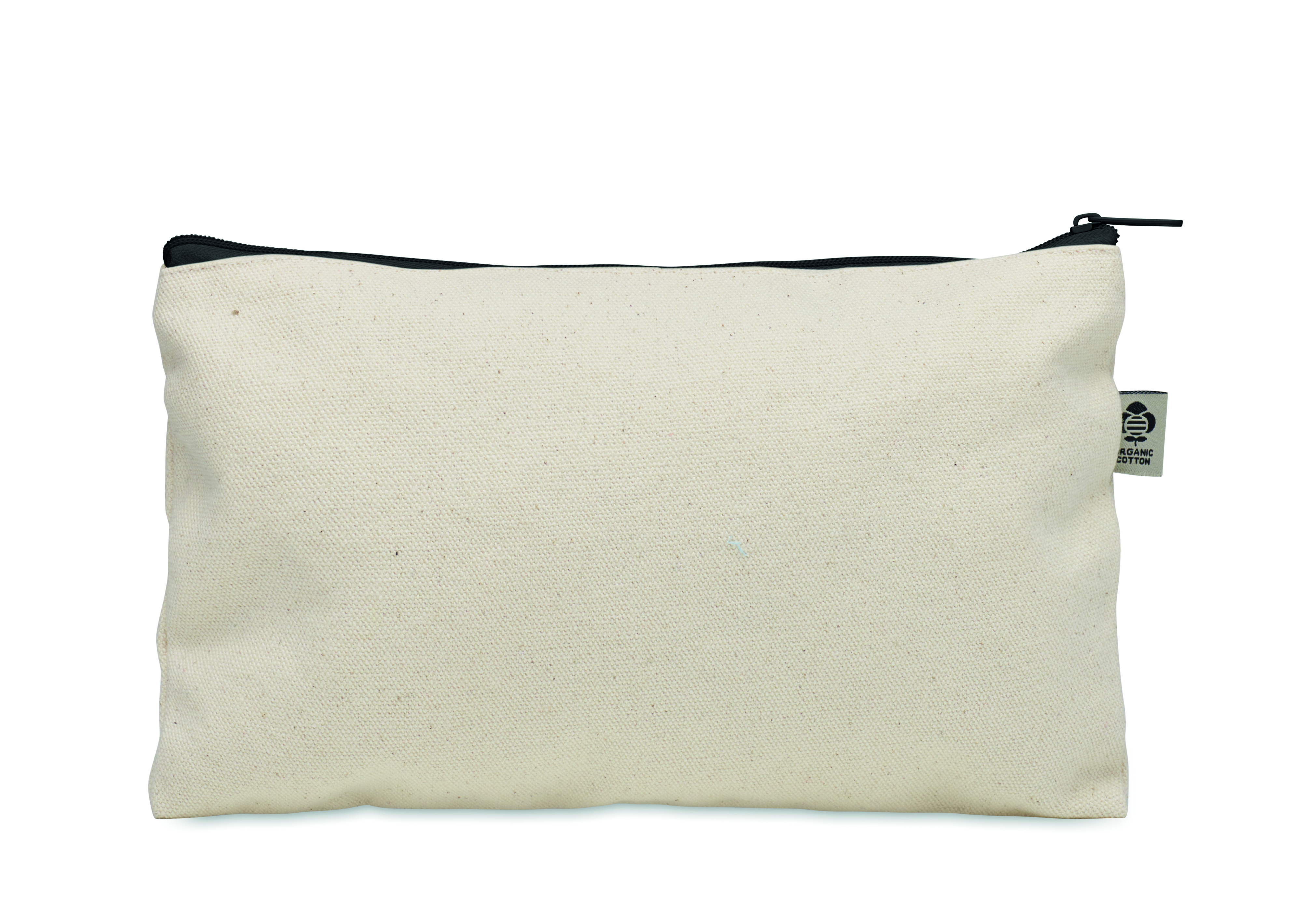 Kosmetiktasche aus Organic Cotton mit farbigem Reißverschluss. 340 g / m².