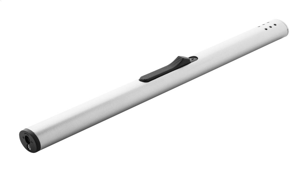 Nachfüllbarer Piezo-Küchen-/Grillfeuerzeug aus Aluminium. Wird mit etwa 80% Gasfüllung geliefert. Nur in vollen Exportkartons (ein Vielfaches von 120 Stück) lieferbar!