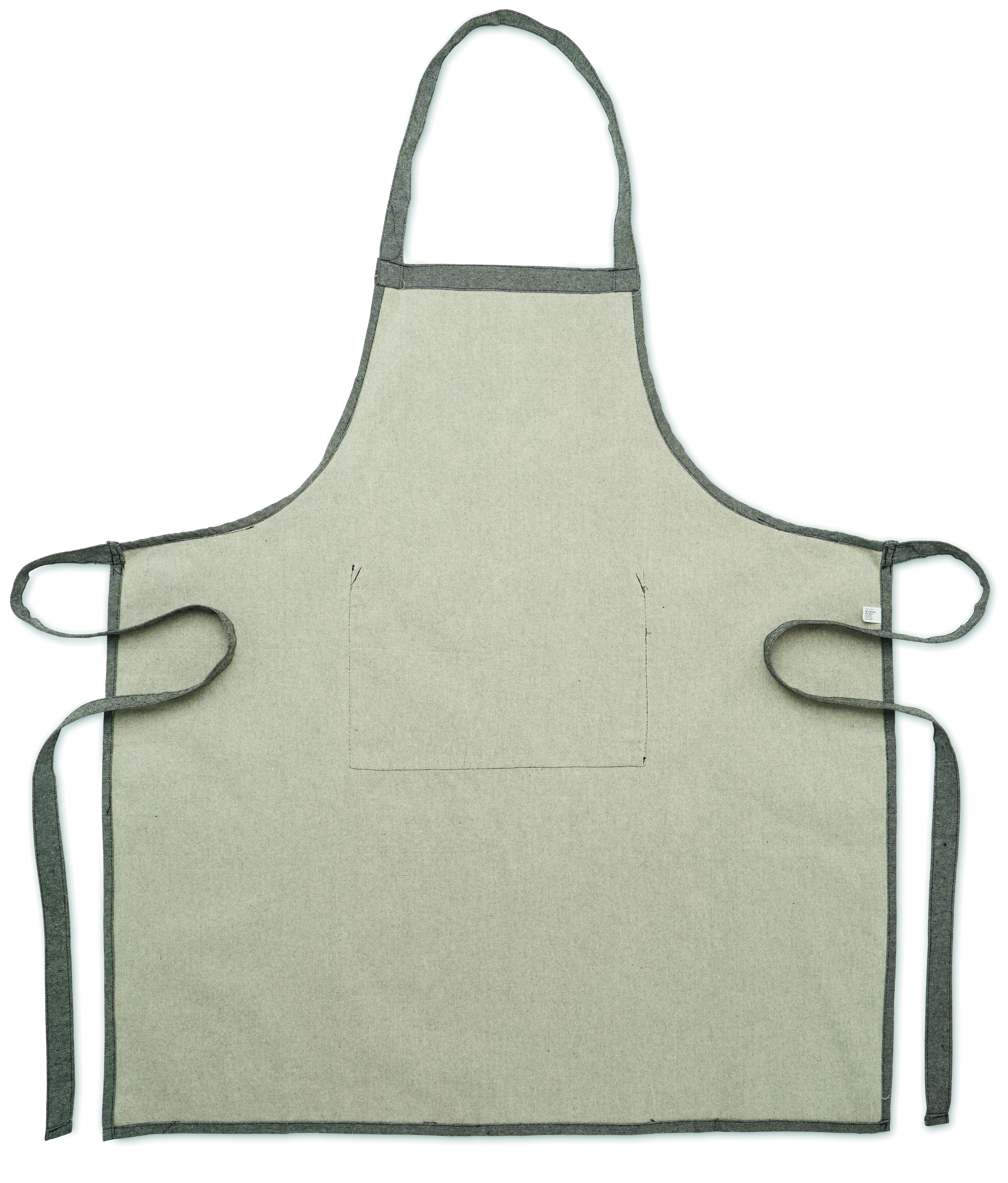Küchenschürze mit verstellbarem Nackenband und 1 Fronttasche. Recycelte Baumwolle 220 g / m². (80 % recycelte Baumwolle, 20 % Baumwolle)