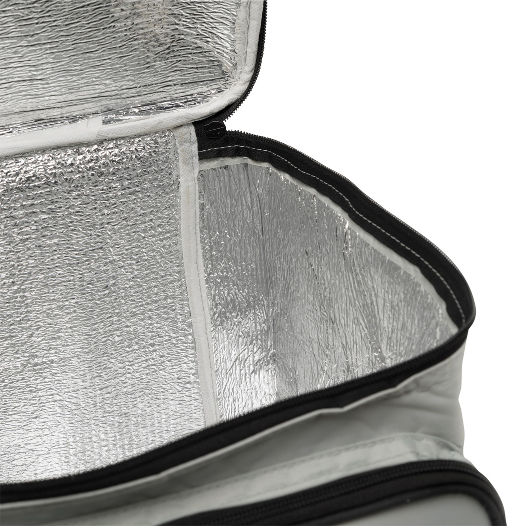 Kühltasche ICE im quadratischen Format: mit isoliertem Reißverschluss-Hauptfach, ein Reißverschlussfach auf der Front, verstellbarer Schultergurt