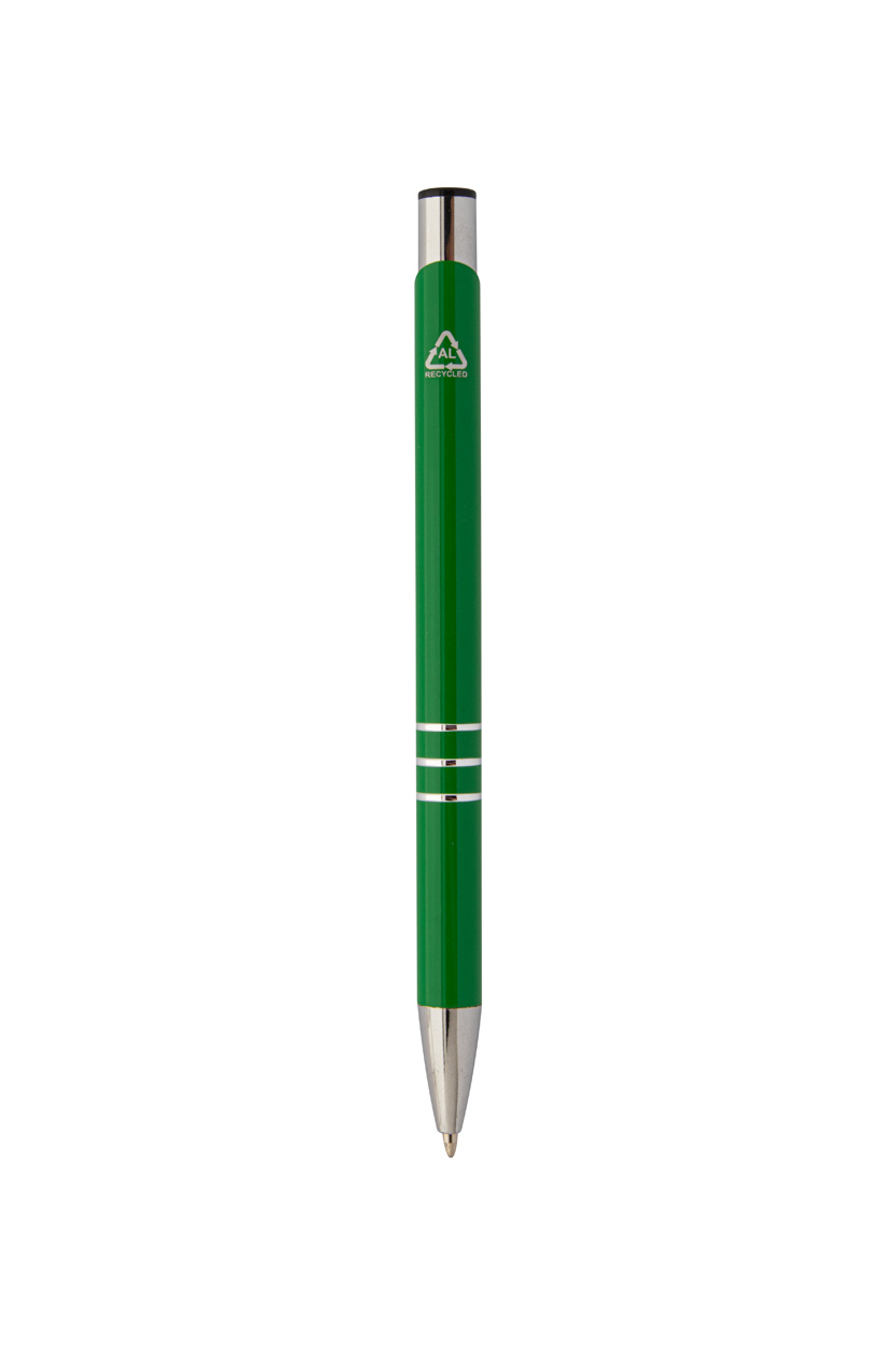 Kugelschreiber aus recyceltem Aluminium, blauschreibend.