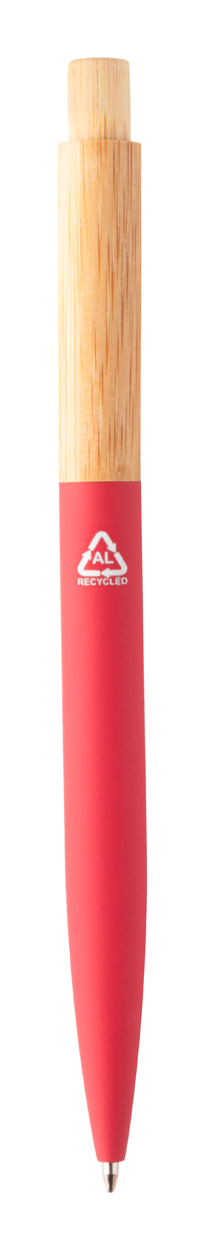 Kugelschreiber aus Bamgus und recyceltem Aluminium mit gummierter Oberfläche und Gunmetal-Clip. Blauschreibend.