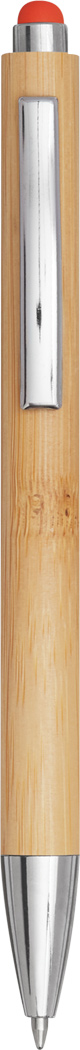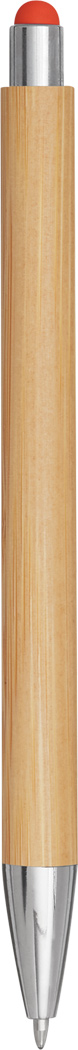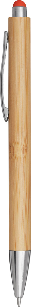 Kugelschreiber TOUCHY: mit elegantem Bambus-Schaft, Druckmechanismus, am Schaftende mit farbiger Touchscreen-Spitze, blauschreibend