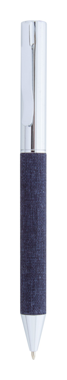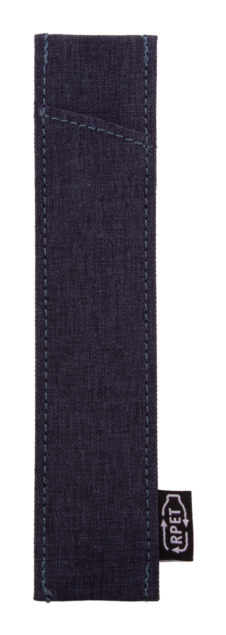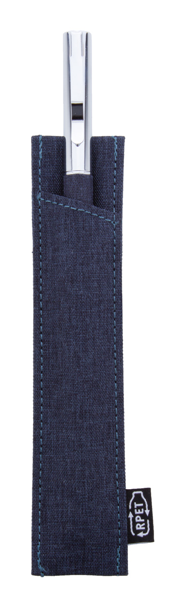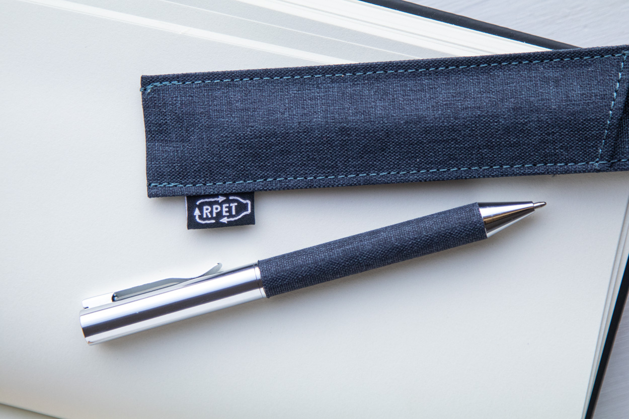 Drehkugelschreiber aus Metall mit einer Ummantelung aus RPET Polyester in einem farblich abgestimmten Etui aus RPET Polyester, blauschreibend.