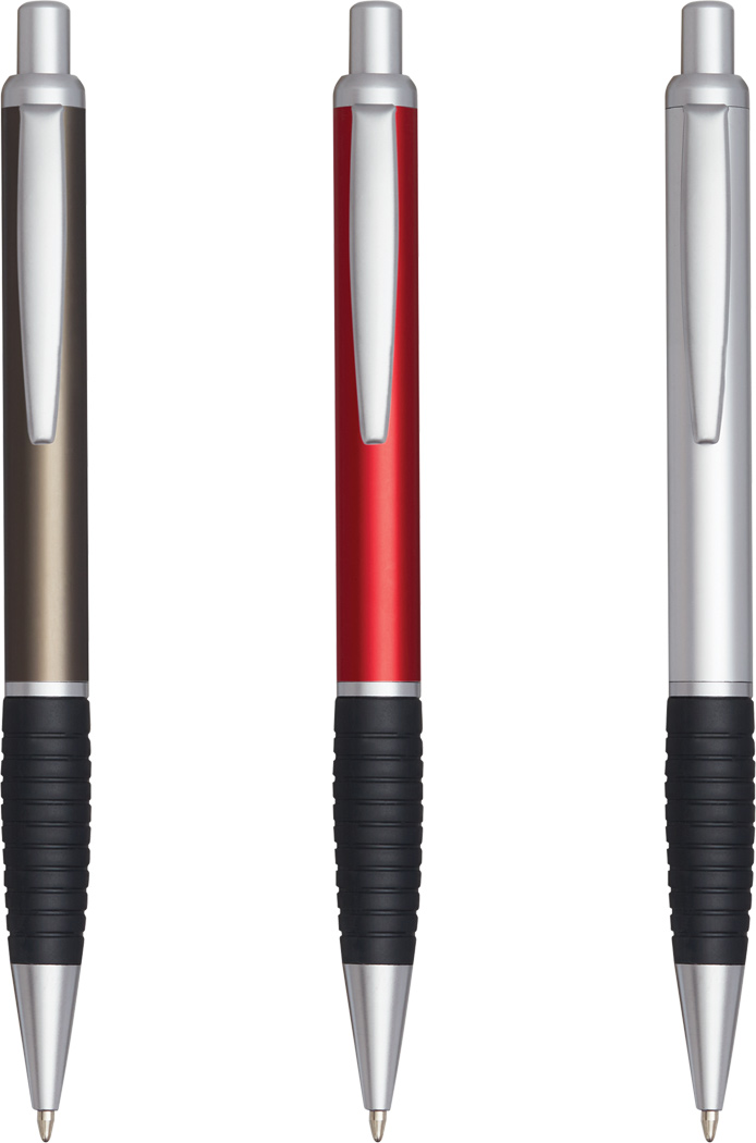 Kugelschreiber VANCOUVER: mit Großraummine, gummierter Griffzone und silbermattem Dekor, blauschreibend