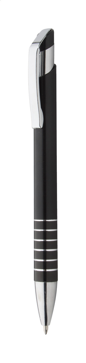 Kunststoff-Kugelschreiber mit Metallic-Oberfläche, Aluminium-Griffzone und Metall-Clip, blauschreibend.