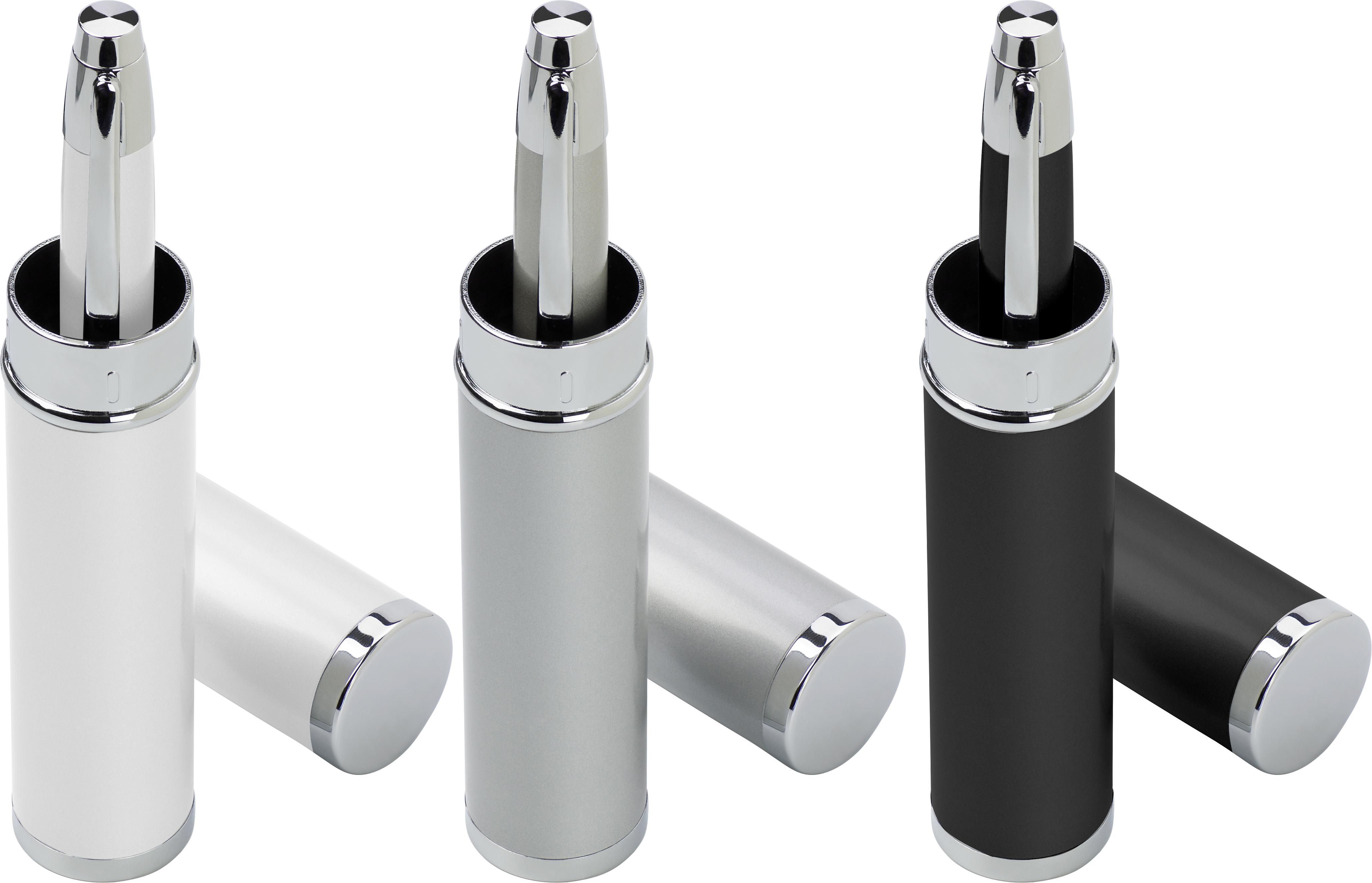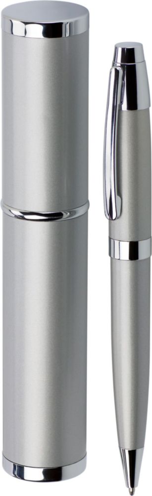 Kugelschreiber aus Metall, mit Drehfunktion, Metall-Clip, schwarzer Mine und XXL-Etui.