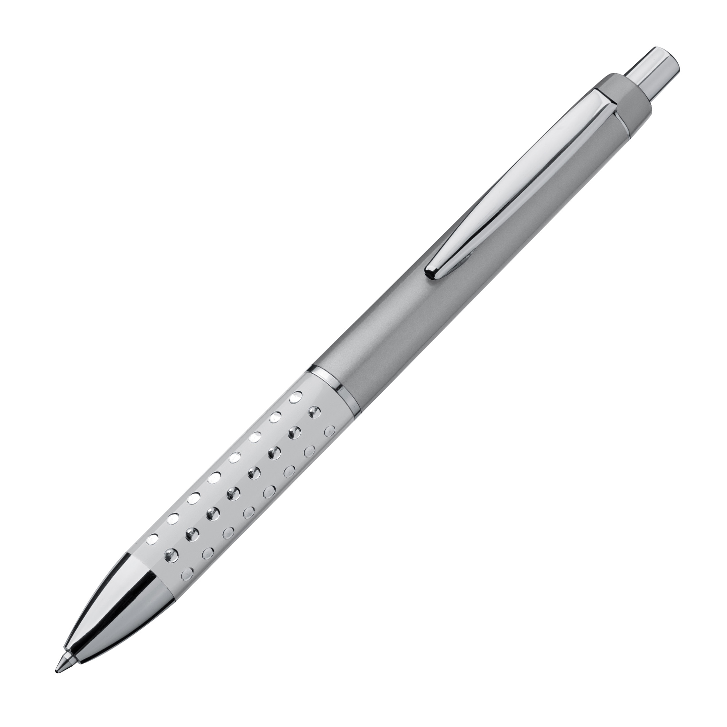 Kugelschreiber mit glitzernder, rutschfester Griffzone und blau schreibender Großraummine. Ihre Werbung drucken wir auf den Schaft.