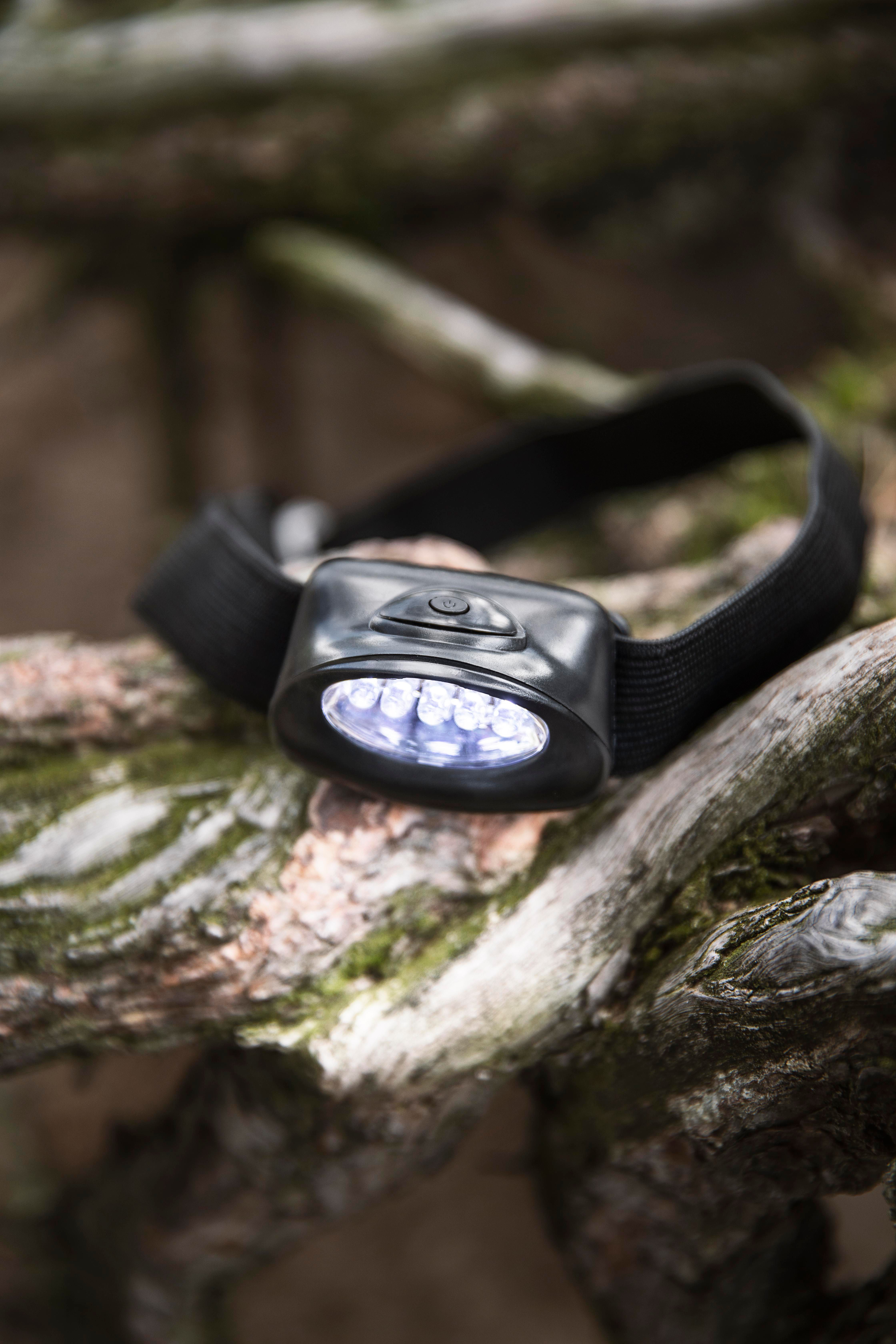 LED-Kopflampe aus ABS-Kunststoff mit 5 LEDs und elastischem Riemen für die Kopfbefestigung.