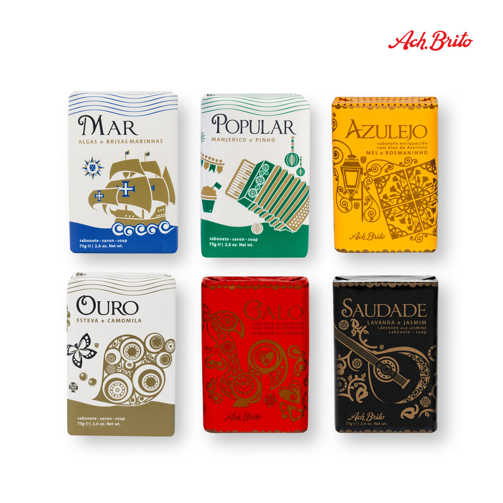 Eine lusitanische Kollektion, die an den portugiesischen Traditionalismus anknüpft, mit Verpackungen, die auf verschiedene nationale Elemente anspielen. Die Seifen basieren auf pflanzlicher Seife und sind mit Olivenöl angereichert. Sie werden traditionell in Portugal hergestellt und sind für alle Hauttypen geeignet. Fassungsvermögen bis zu 75 g. Umweltfreundliches ProduktFarbe 103: Seife Saudade - Duft von Lavendel, Jasmin, Estragon, Bergamotte, Patchouli und AmberFarbe 105: Galo Seife - Thymian und Orangenduft mit einem Hauch von Sonnenblumen und OlivenholzFarbe 106: Ouro Seife - Duft von Zistrose und Kamille mit Noten von Zedernholz und Vetiver Farbe 108: Azulejo Seife - Duft von Honig und Rosmarin mit einem Hauch von frischer Minze und ZitronenblätternFarbe 109: Popular Soap - Duft von Majerico und Kiefer mit holzigen Noten von ZypresseFarbe 114: Mar Soap - Duft von Seetang und Meeresbrise mit einem Hauch von Fleur de Sel und Seerose 55 x 80 x 20 mm
