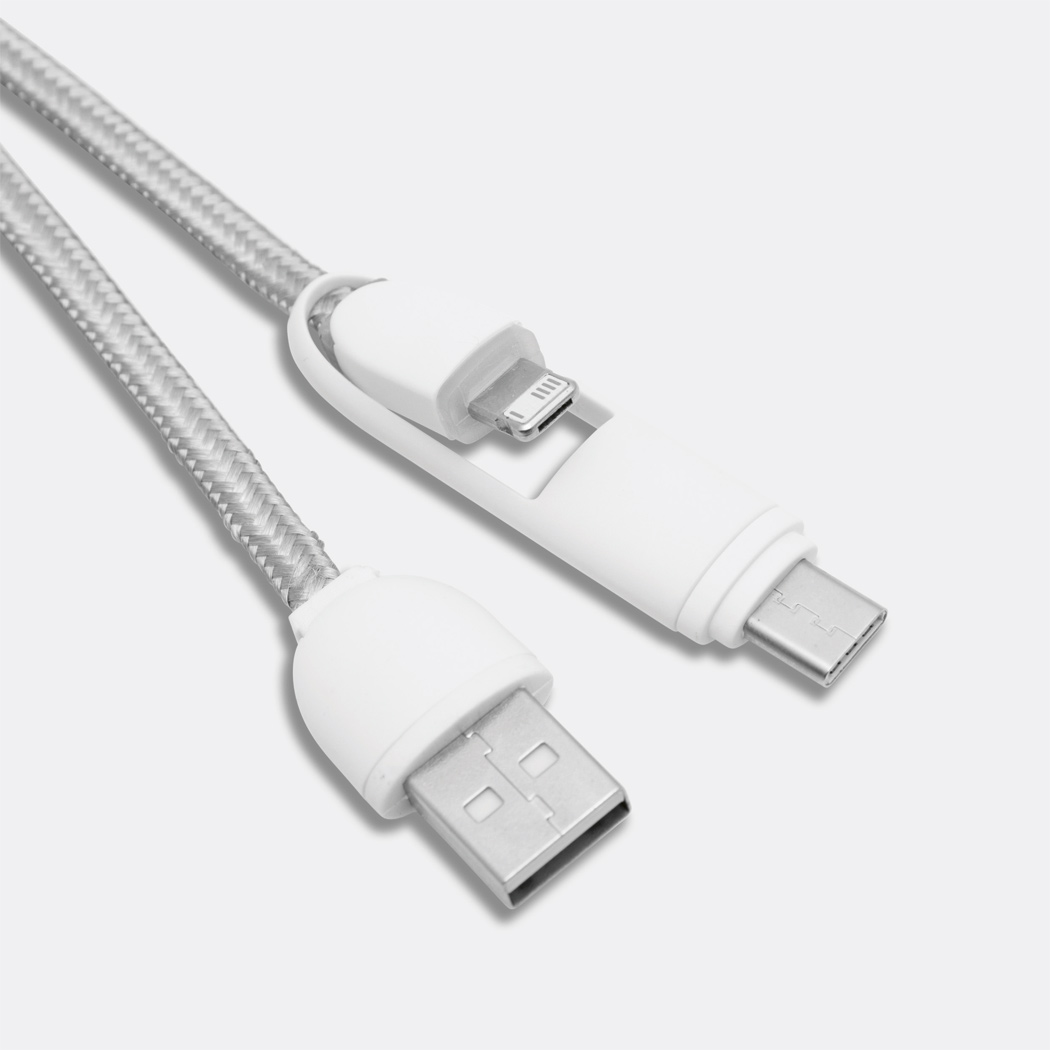 Ladekabel ANNOUNCER: zum Aufladen von Smartphones und USB-betriebenen Geräten, inkl. 2 Ladesteckern (USB Typ C, Kombistecker Micro-USB / Lightning), Kabellänge ca. 50 cm, Ladestandanzeige ändert die Farbe von rot auf blau, wenn der Ladevorgang fast beendet ist, bzw. der Ladestrom 0,3A unterschreitet, mit Schlüsselring