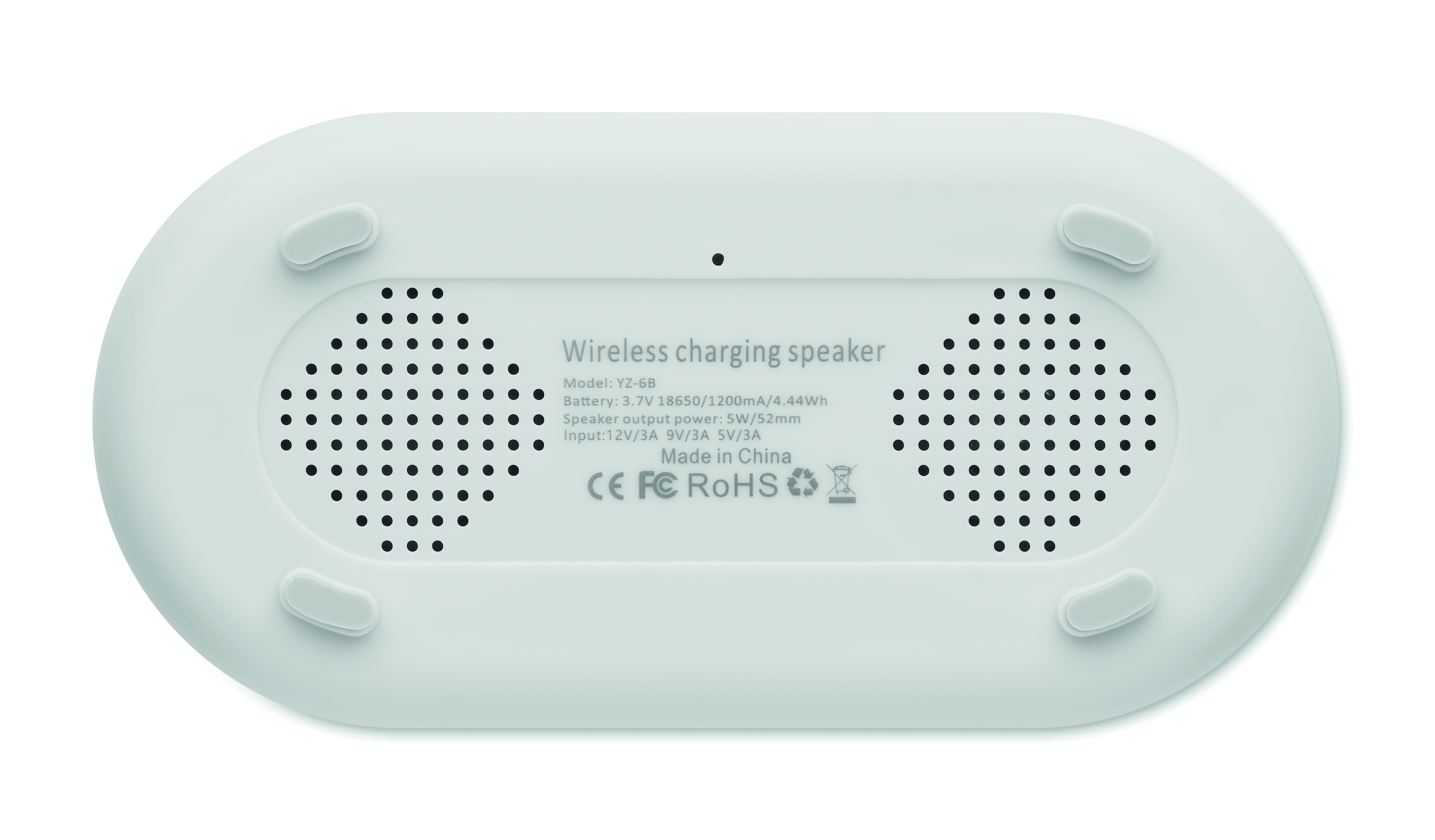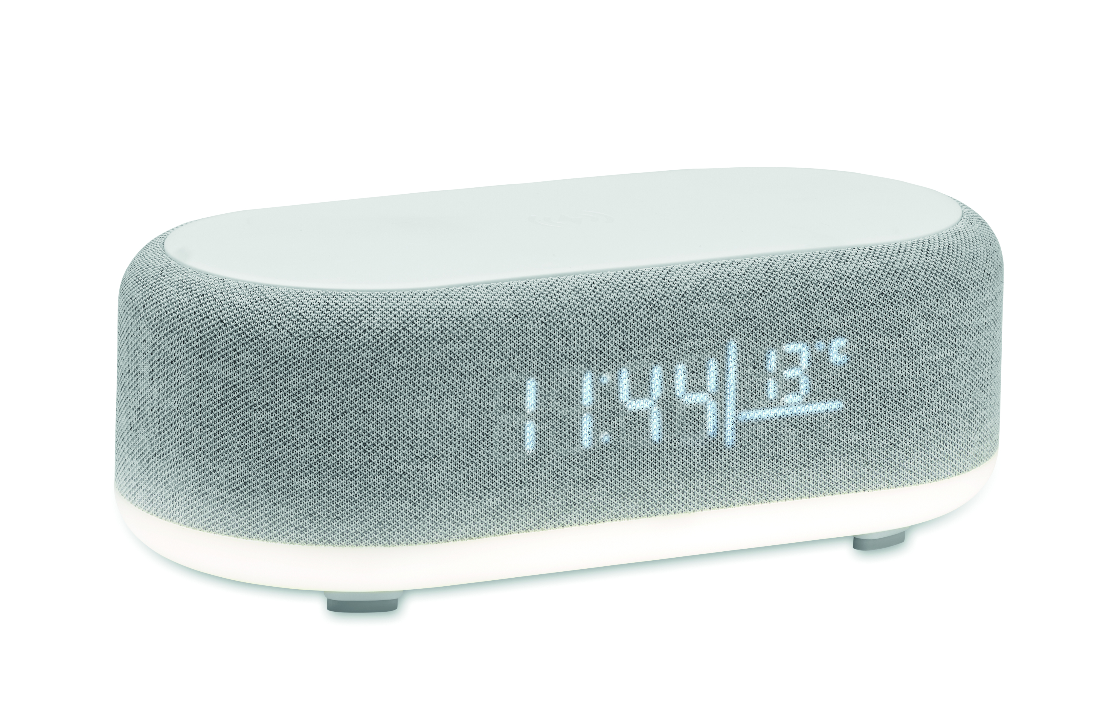 4in1 kabellose Ladestation 15W und 5W-Lautsprecher mit Beleuchtung. Zeit- und Temperaturanzeige, Weckfunktion. Eingebauter Li-Iin-Akku: 1200 mAh. Spielzeit ca. 7 h.