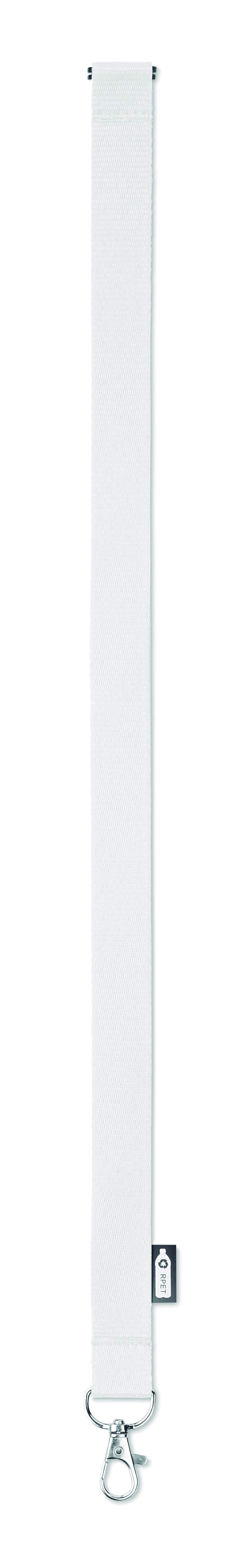 Lanyard aus RPET mit Metallkarabiner und Panikverschluss. 20 mm breit.