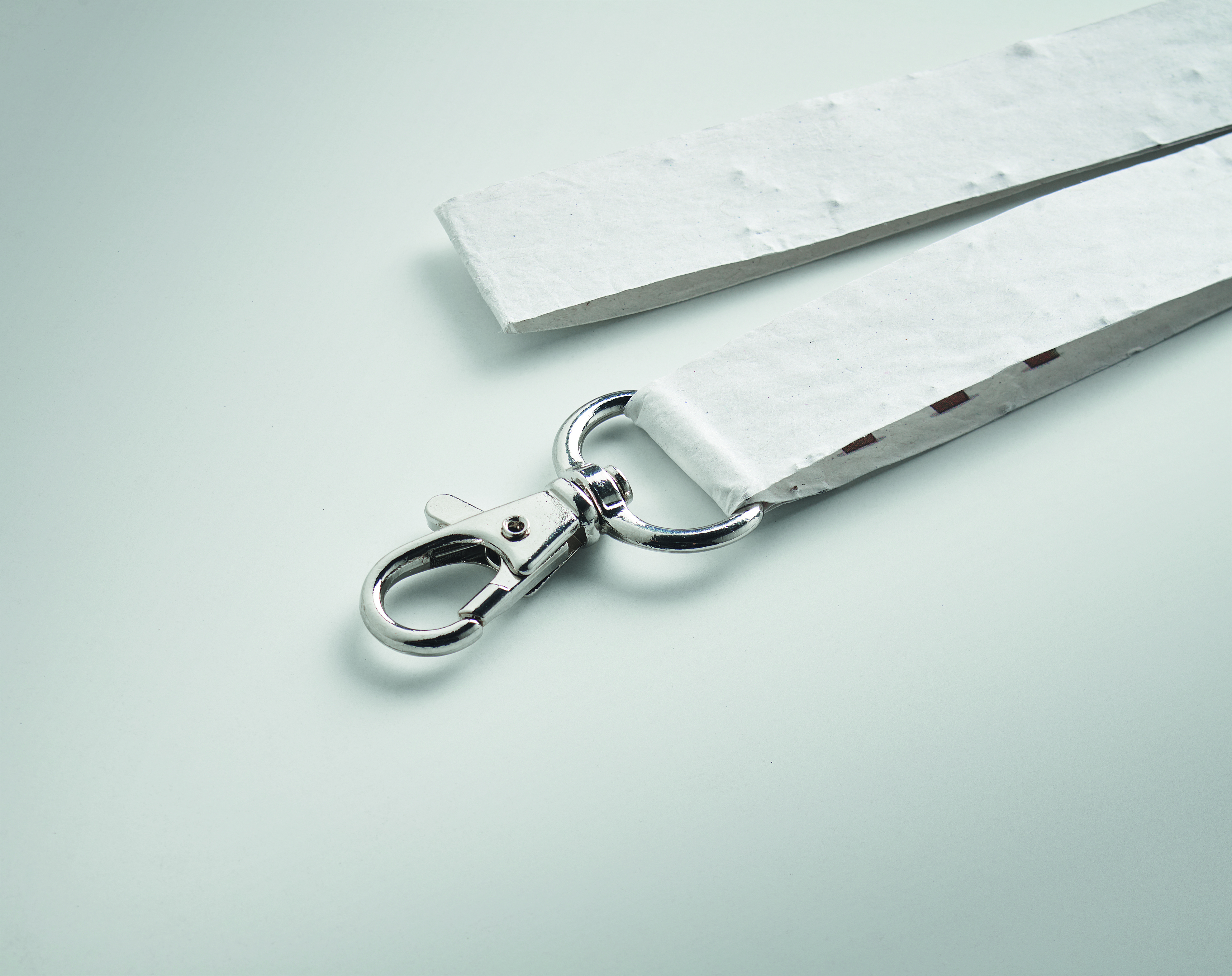 Lanyard aus Samenpapier mit Metallkarabiner. Recyceltes Papier mit Wildblumensamen. 20 mm breit. Hergestellt in der EU.