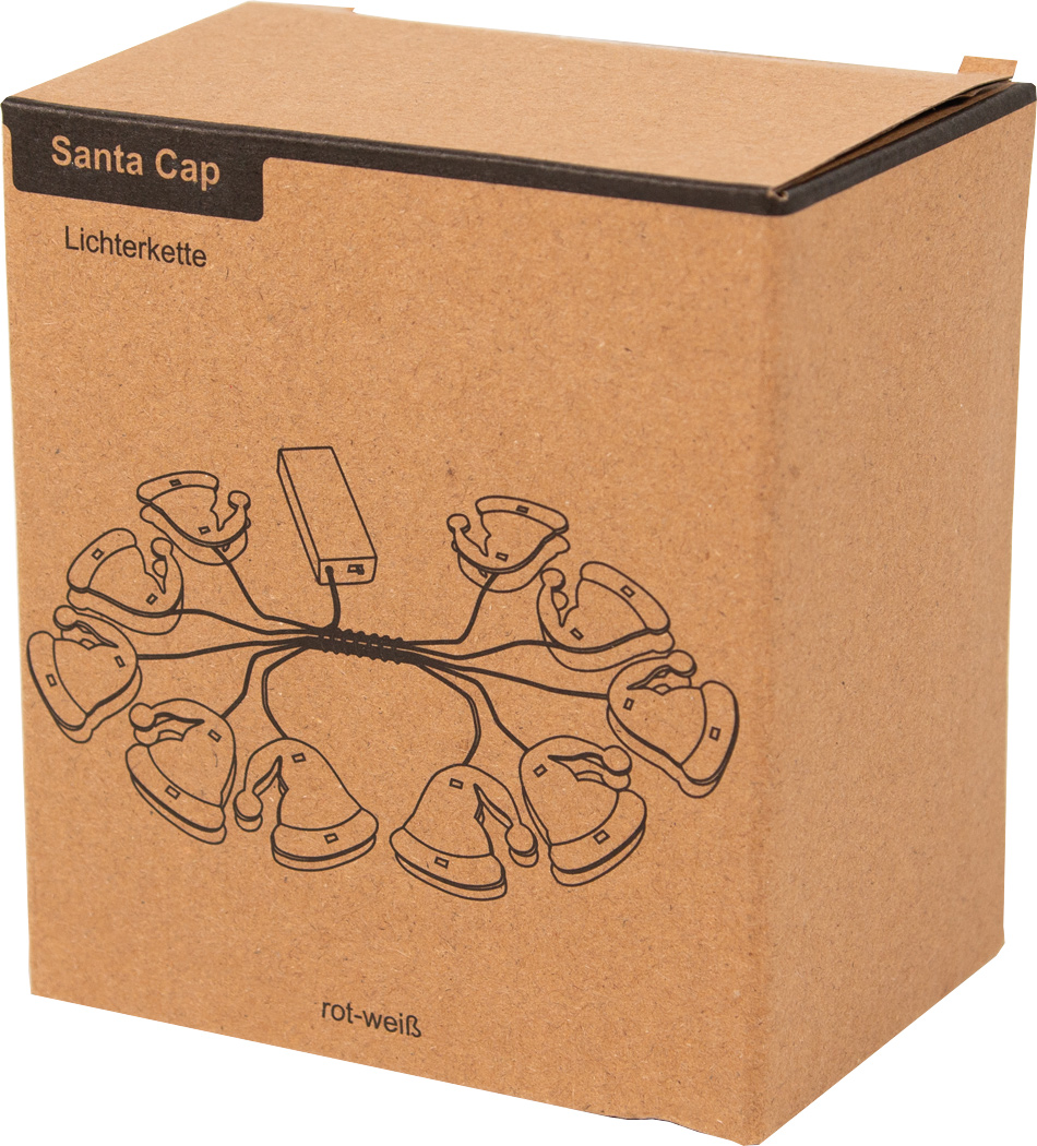 Lichterkette SANTA CAP mit Firmenlogo individuell bedruckt.
