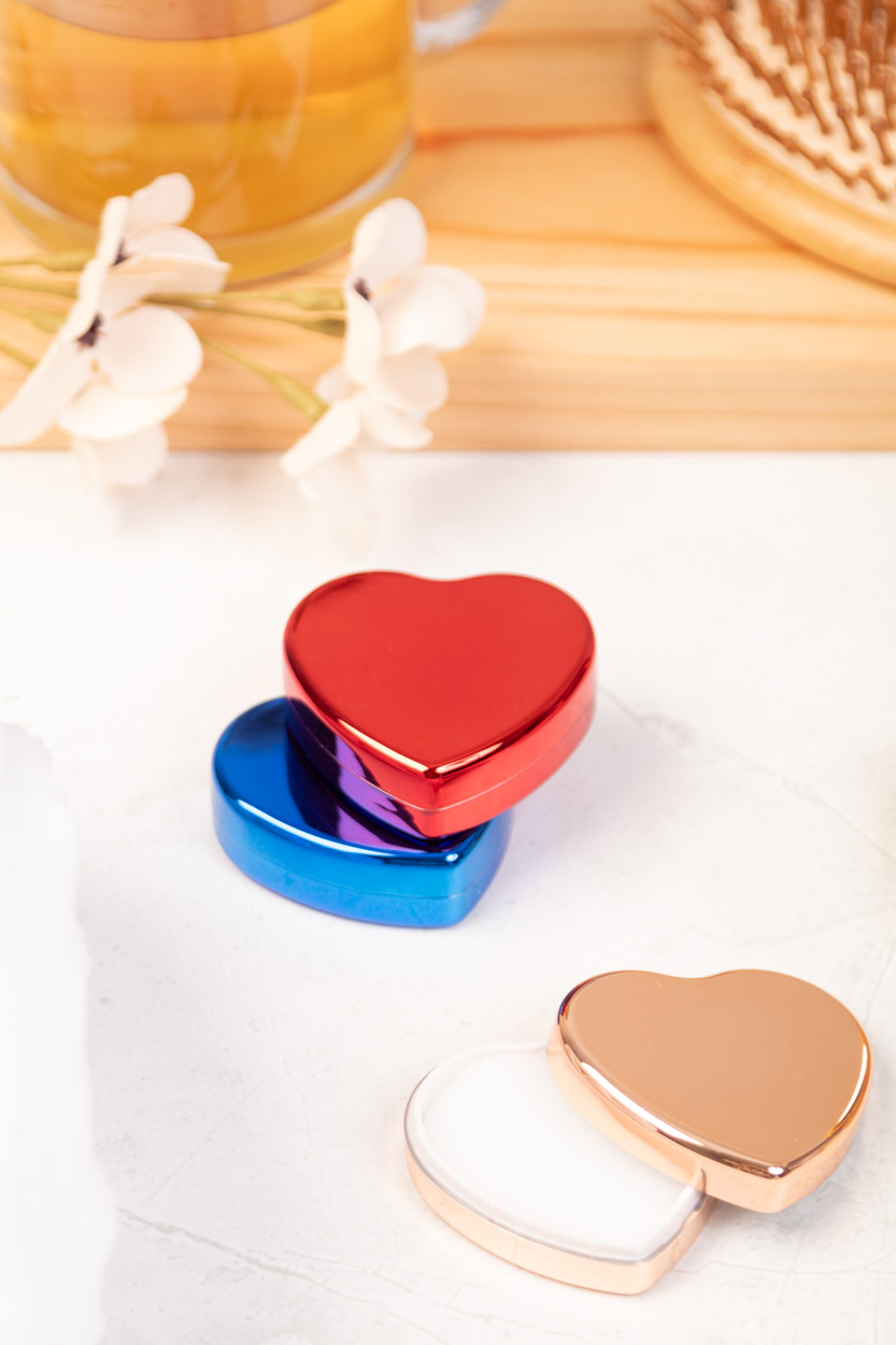 Vanille Lippenbalsam im herzförmigen, metallikfarbenem Behälter aus recyceltem ABS mit SPF 15 Schutz. Das Produkt enthällt keine Inhaltsstoffe tierischen Ursprungs.