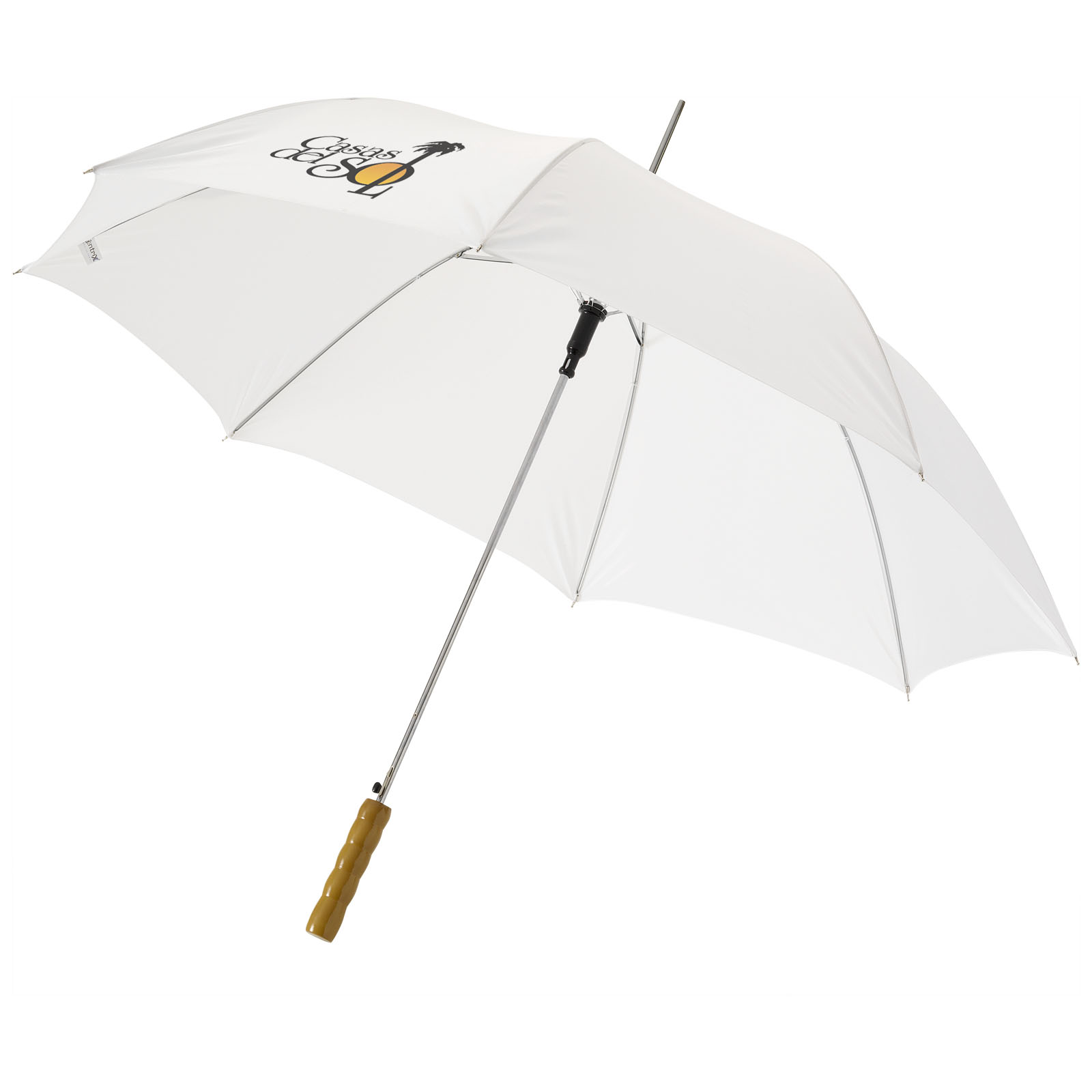 Lisa 23" Automatikregenschirm mit Holzgriff mit Logo für Geschäftskunden individuell bedruckt.