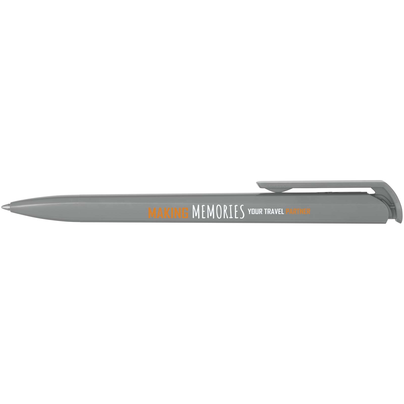 Kugelschreiber mit Schaft, Clip und Spitze aus recyceltem Kunststoff. Tintenfarbe: Schwarz. Schreiblänge: 3000 Meter. Strichstärke: 1,00 mm. Hergestellt in Deutschland.
