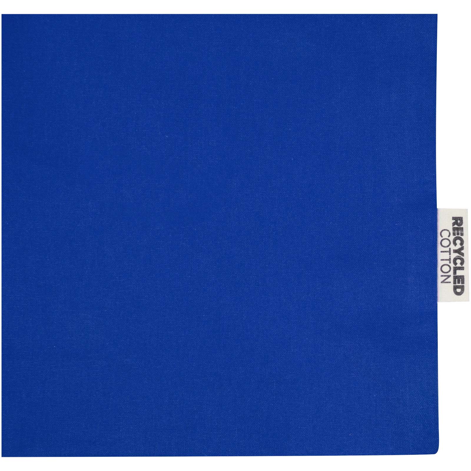 Madras 140 g / m² Baumwoll Tragetasche mit Seitenfalten aus GRS recycelter Baumwolle 12L mit Firmenlogo individuell bedruckt.