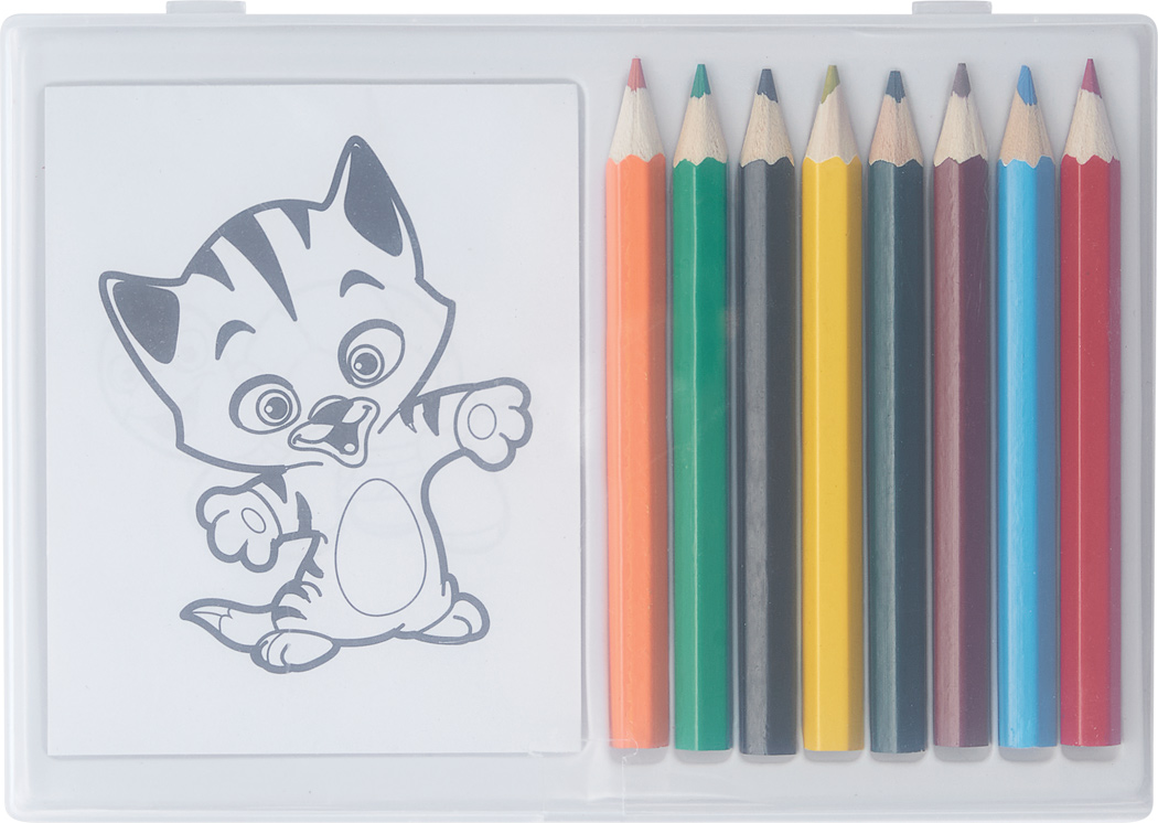 Malset CRAZY ANIMALS: inkl. 12 Malblätter mit verschiedenen Tiermotiven zum Ausmalen, 8 lackierte Buntstifte, angespitzt, in transparenter Box