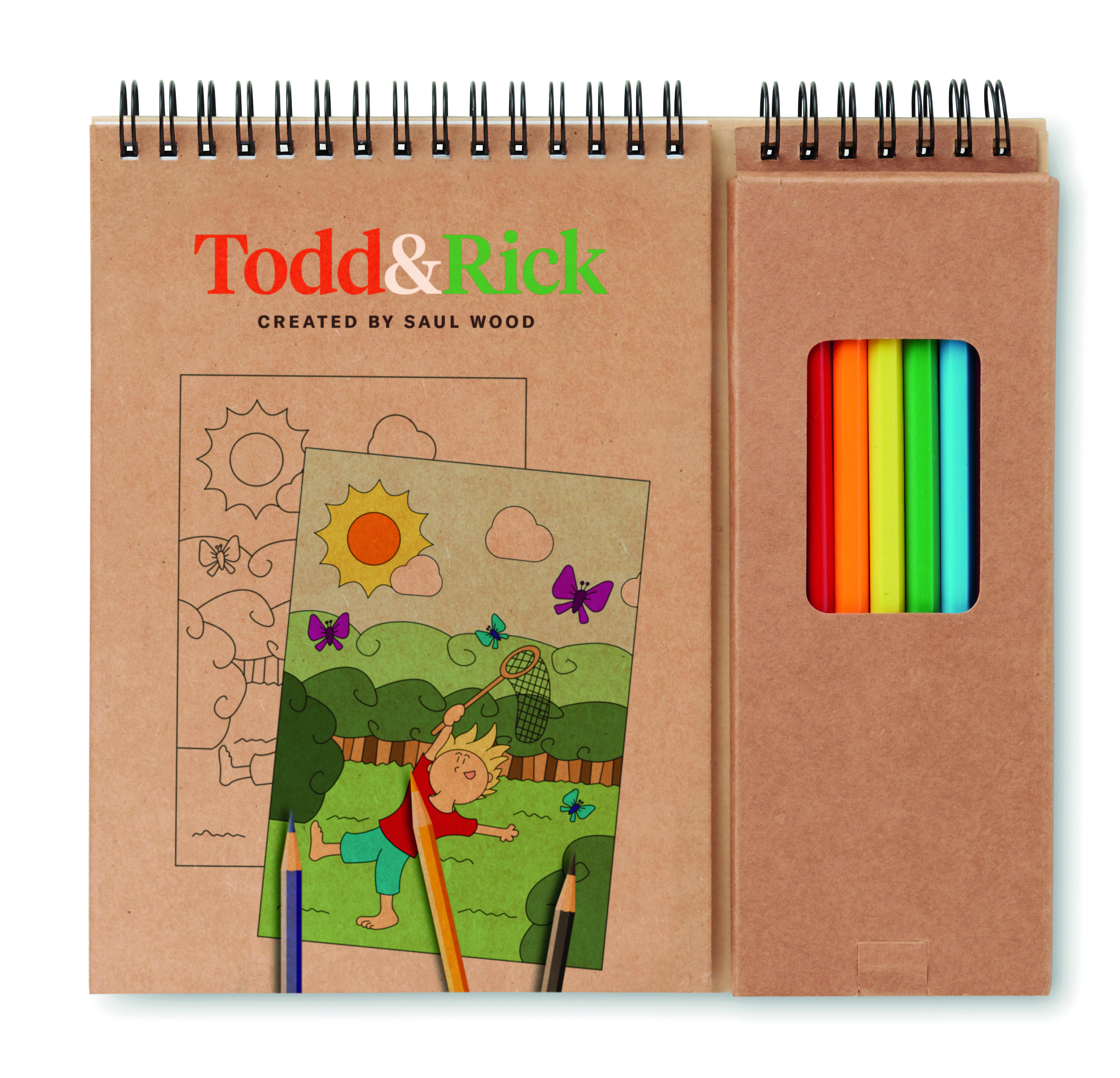 Malset mit 6 Ausmalseiten und 18 Blanko-Seiten. Inklusive 8 Buntstiften.