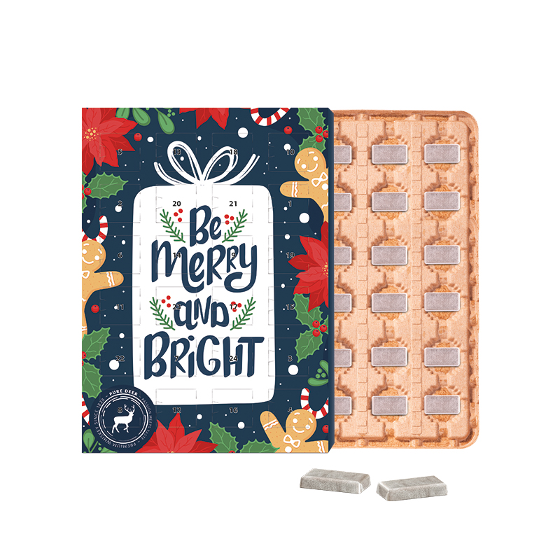 Marken Wand Adventskalender ECO, Papierblister, Alpenmilch-Schokotäfelchen in Pergaminpapier mit individuellem Logo und Expresslieferung.
