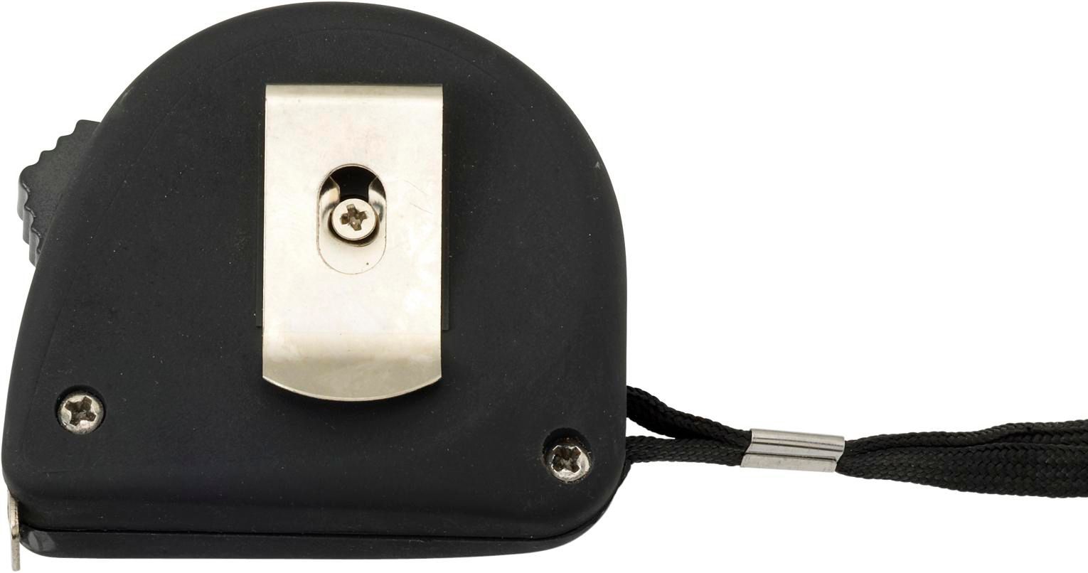 Maßband aus Kunststoff, Messbereich 2 m, mit Feststeller, Handschlaufe und Gürtelclip.