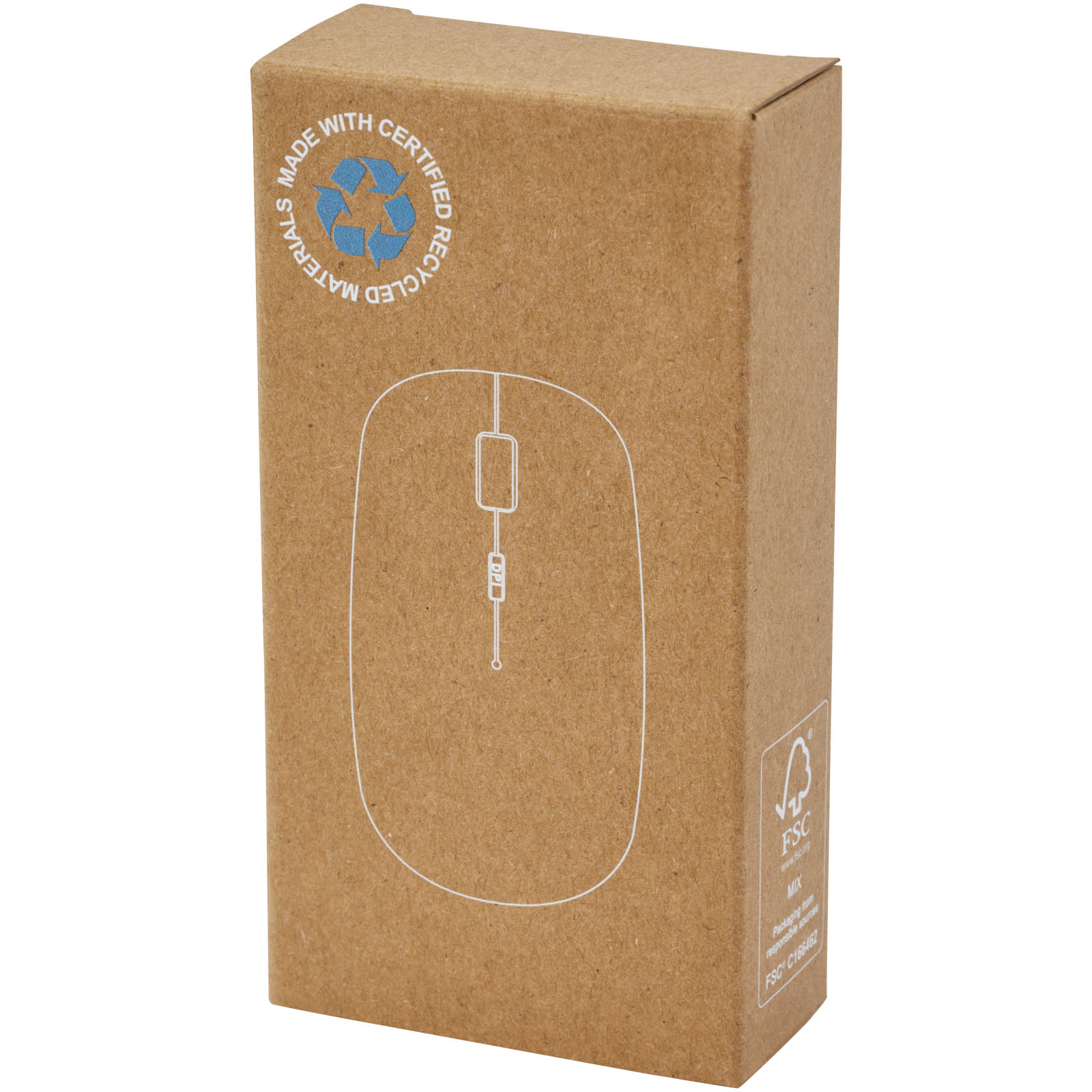 Elegante und helle optische 4-Tasten-Maus aus recyceltem Kunststoff, mit einem USB-Empfänger für kabellose RF-Verbindung und spezieller DPI-Funktion (800/1200/1600 DPI). Mit der DPI-Taste können Sie die Empfindlichkeit Ihrer Maus schnell ändern, was beim Spielen sehr praktisch ist Benötigt 2×AAA-Batterien (nicht enthalten). Kompatibel mit Windows- und Mac-Betriebssystemen. Wird in einer Schachtel aus Kraftpapier geliefert.