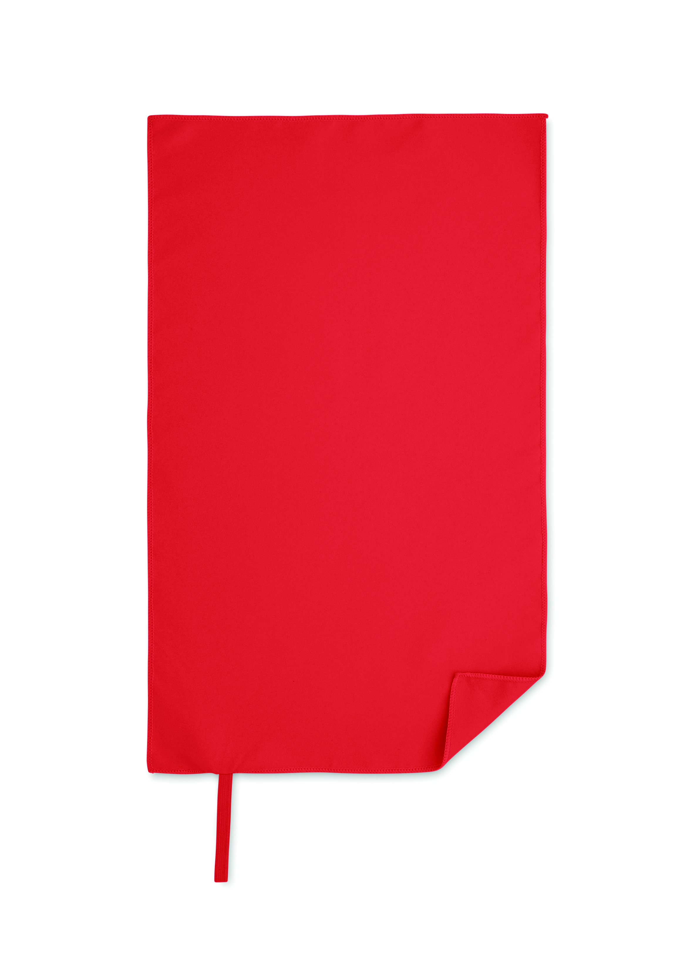 Handtuch aus Mikrofaser. 90% Polyester und 10% Polyamid mit Elastikschlaufe. Leicht und schnell trocknend. Maße: 30 x 50 cm.