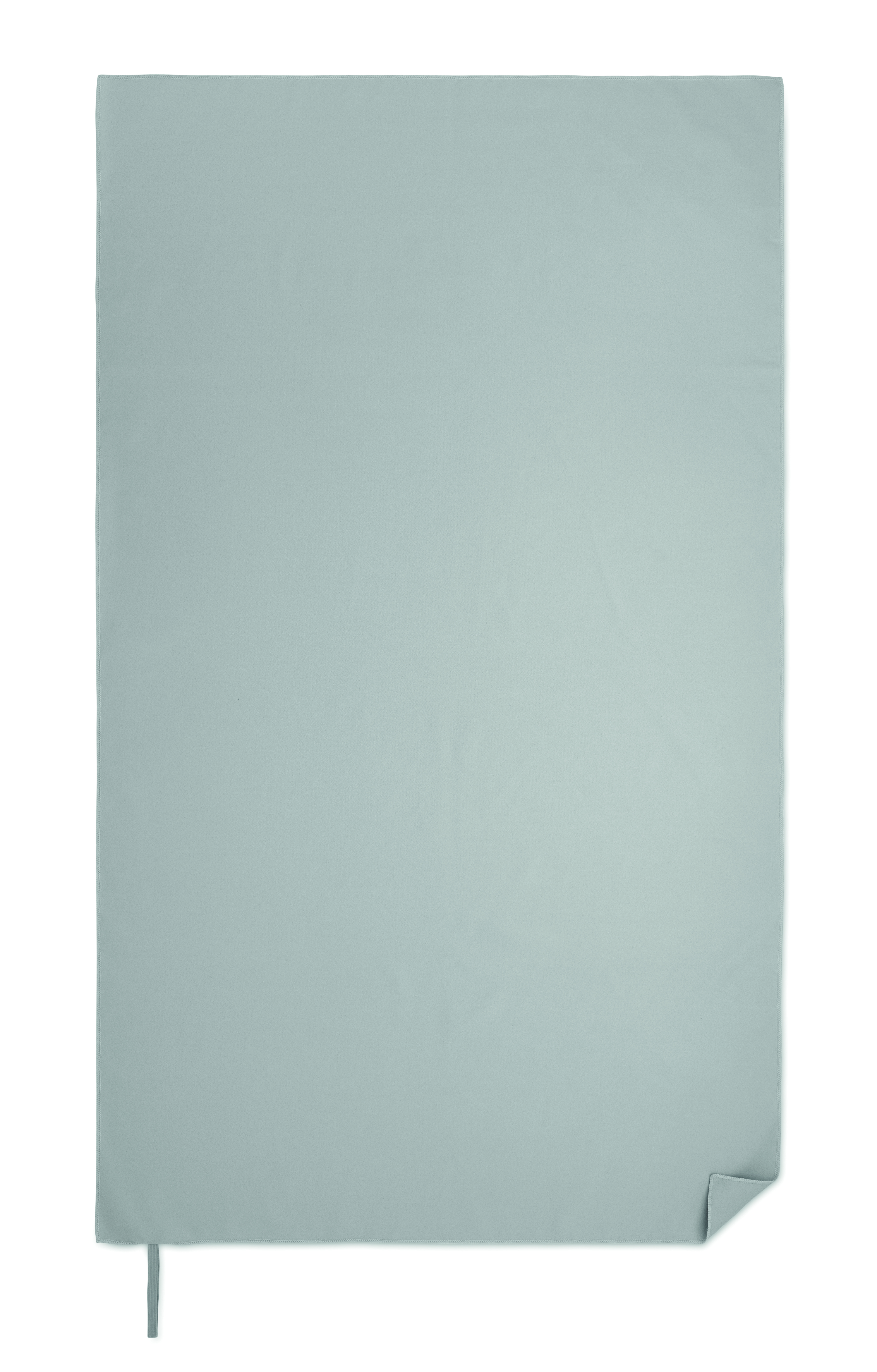 Handtuch aus Mikrofaser. 90% Polyester und 10% Polyamid mit Elastikschlaufe. Leicht und schnell trocknend. Maße: 70 x 120 cm.