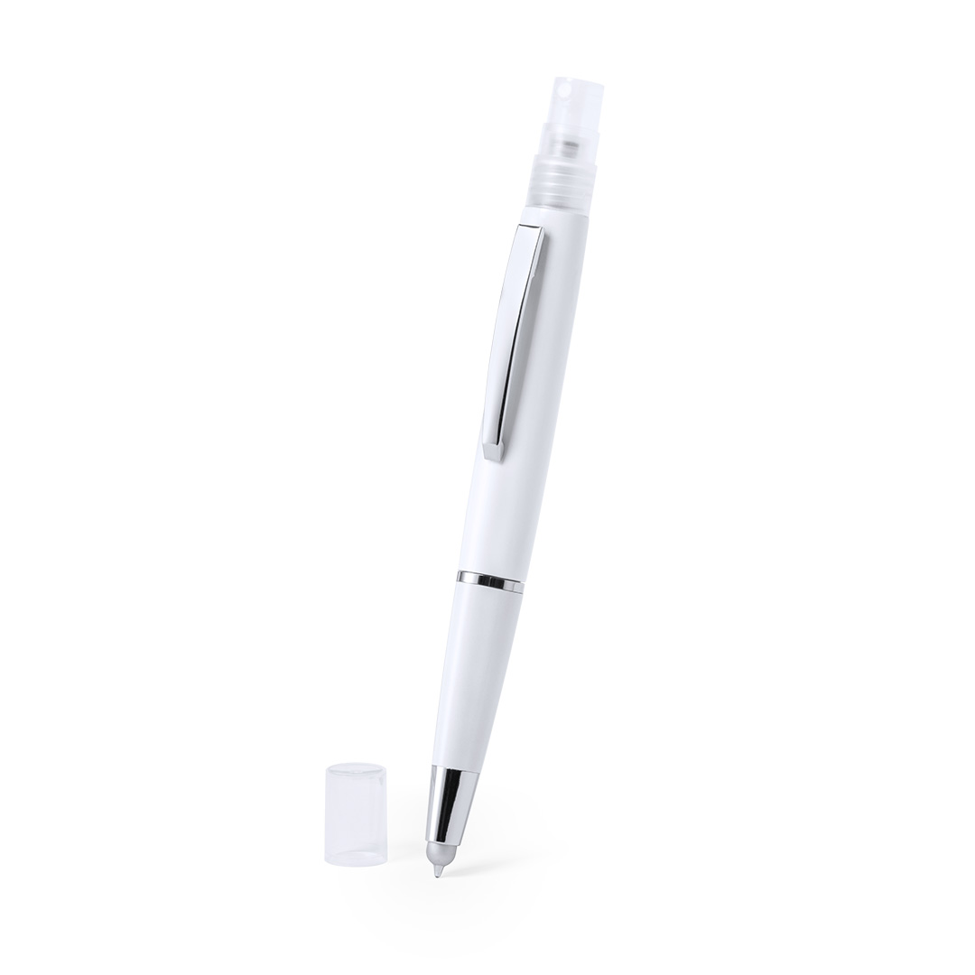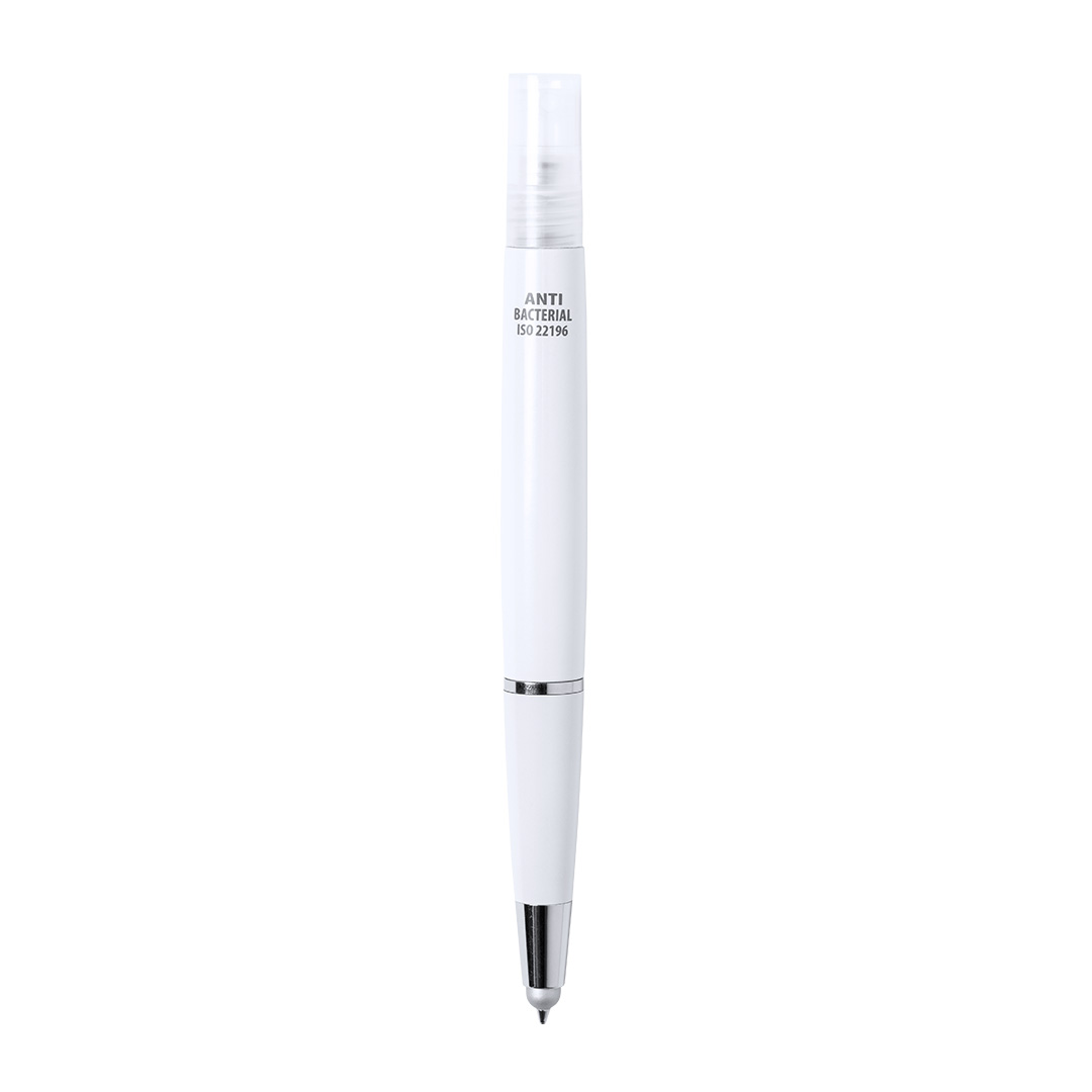 Antibakterieller Kugelschreiber mit wiederaufladbarem Sprayer und Schutzhaube, einschließlich grauem Farbzeiger. Hergestellt aus widerstandsfähigem ABS mit glänzender Oberfläche. Eleganter Metallclip und blaue Tintenmine. Fassungsvermögen des Sprayers 3 ml. Flüssigkeit nicht enthalten. Produkte mit antibakterieller Behandlung sind in der Lage, die bakterielle Belastung der Materialoberflächen dank der Zugabe von permanenten statischen mikrobiellen Mitteln drastisch zu reduzieren, mit hoher Wirksamkeit bei der Hemmung und Verhinderung bakterieller Verunreinigungen. Artikel nach der Norm ISO 22196, die die antibakterielle Aktivität in Kunststoffen und auf nicht porösen Oberflächen bestimmt. Dies erlaubt es uns, die Wirksamkeit der Bakterienhemmung, die die Zusatzstoffe auf den behandelten Artikeln haben, anhand einer quantitativen Bewertung zu bestimmen.