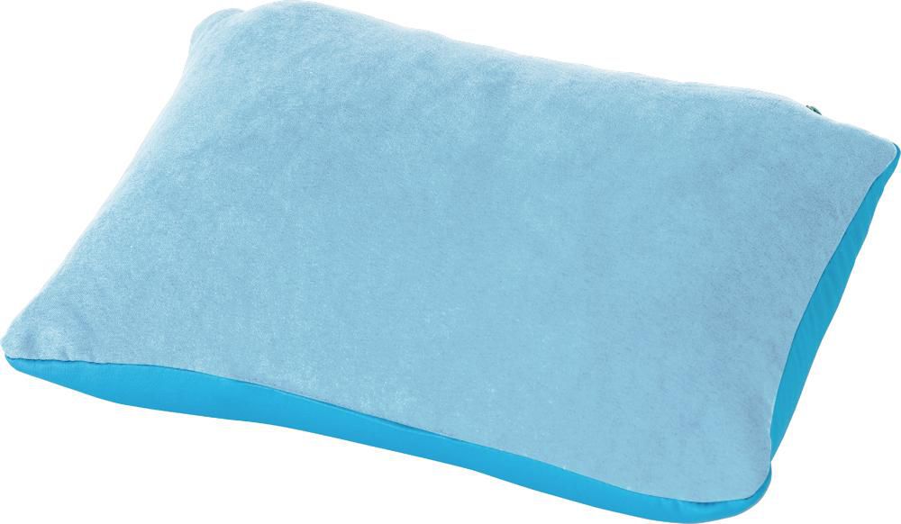 Nackenstütze, zum Kissen faltbar, mit Trageschlaufe und Reißverschluss.