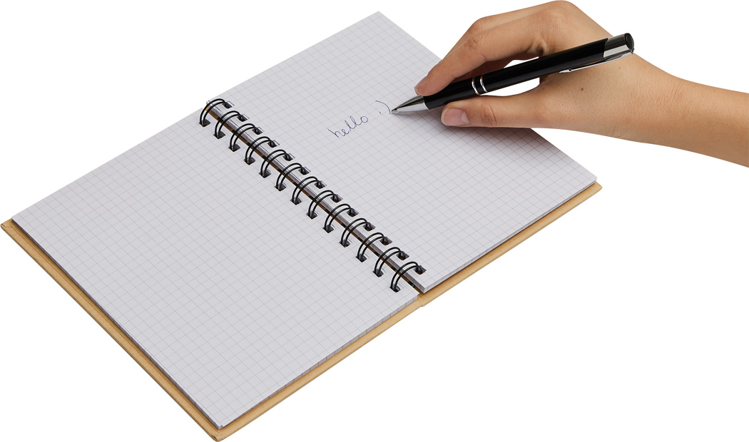 Notizringbuch JOURNALIST: mit 70 Blättern, kariert, 70g / m², inkl. Kugelschreiber (blauschreibend) aus Aluminium, mit Ringlochung und magnetischem Stifthalter im Einband
