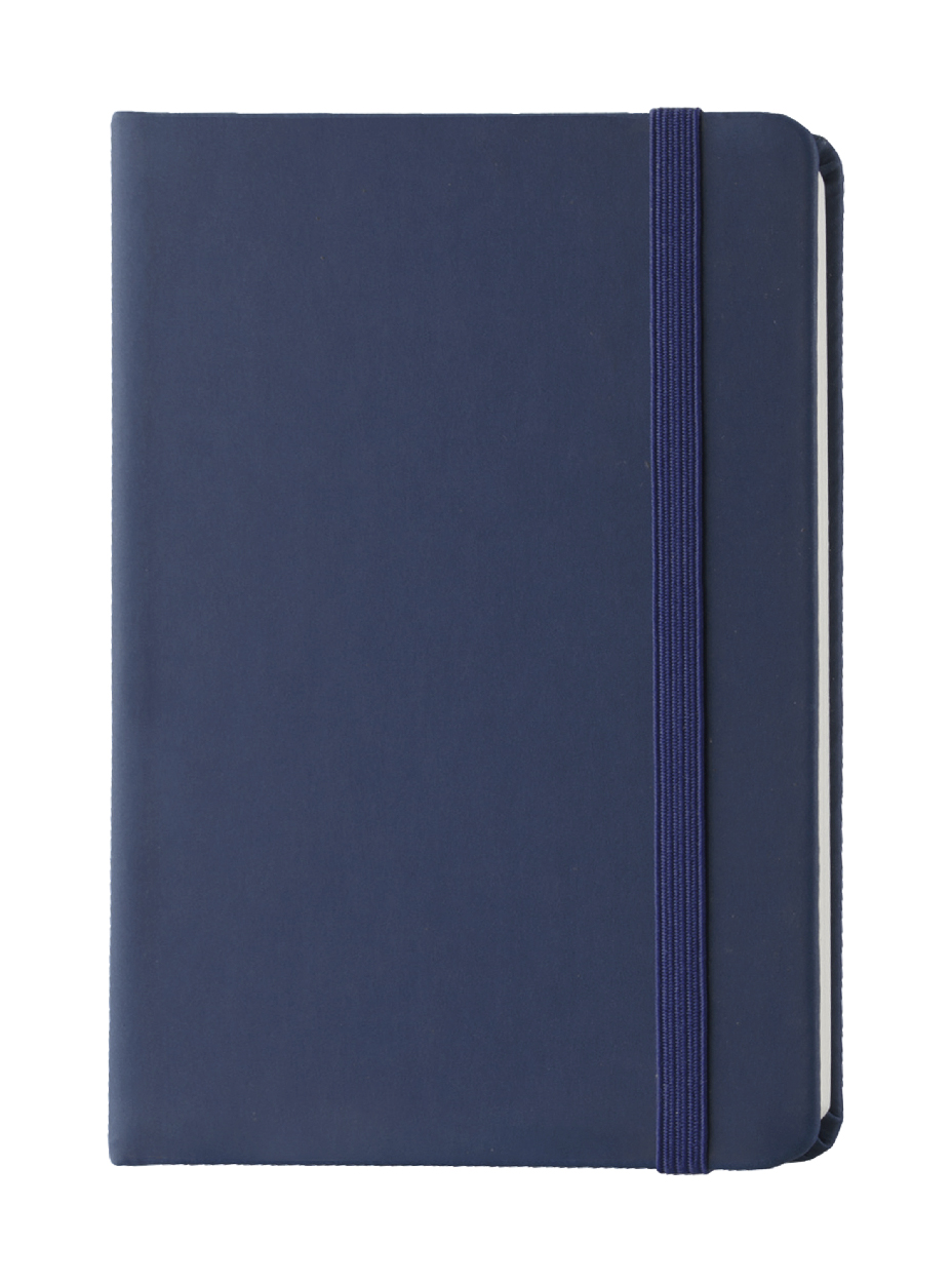 Notizbuch mit Kunstleder-Einband, 100 Seiten (blanko), Lesezeichen und Gummiband. A6-Größe.