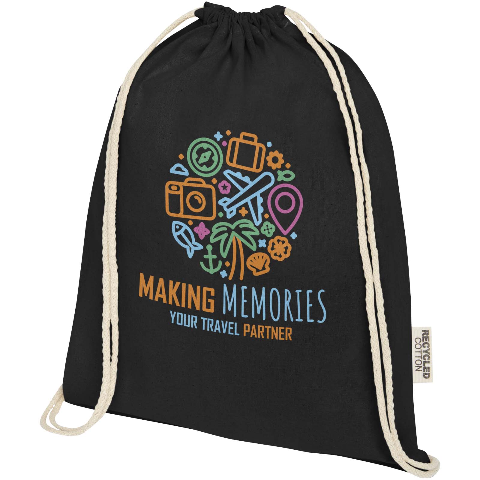 Oregon 140 g / m² Turnbeutel aus GRS recycelter Baumwolle mit Logo für Marketingaktionen.