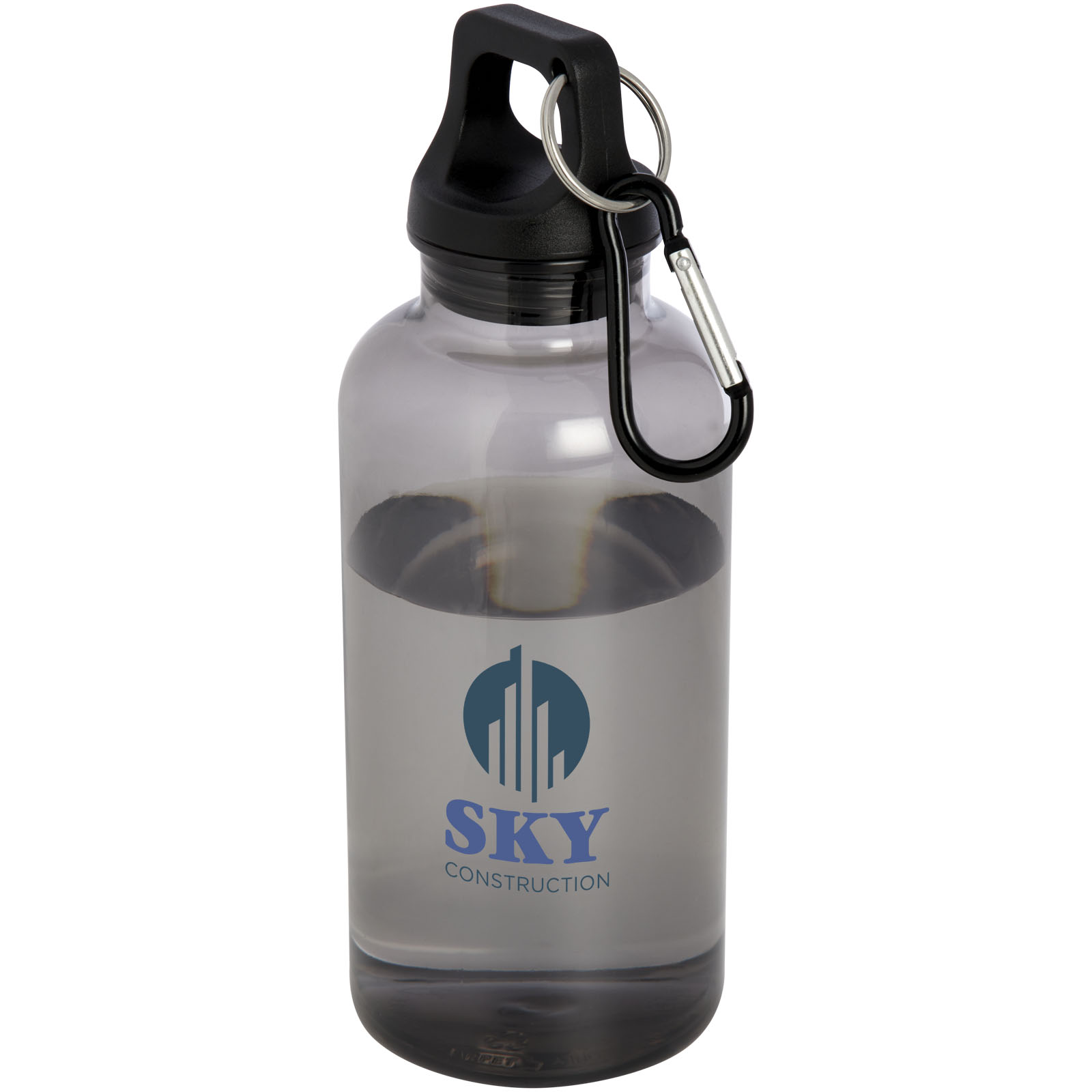 Oregon 400 ml RCS-zertifizierte Trinkflasche aus recyceltem Kunststoff mit Karabiner als Werbegeschenk für Firmenkunden.